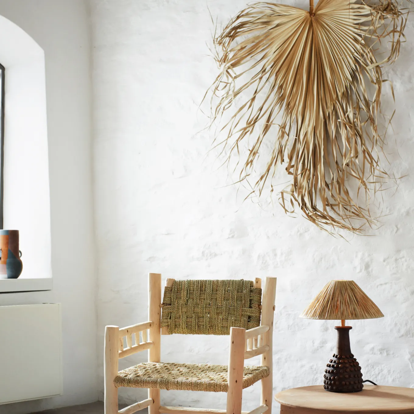 Du bist noch auf der Suche nach einem gemütlichen und natürlichen Wohnaccessoire für deine Wand? Wir haben hier eine wunderschöne Alternative zum Wandteppich, Bilderrahmen, Plakat oder Bücherregal. Dieses große Palmblatt sorgt für Gemütlichkeit und verleiht deinem Zuhause im Handumdrehen Bohemian Flair… besonders harmonisch wirkt das Palmblatt in Verbindung mit anderen natürlichen Materialien wie z.B. Leinen, Accessoires aus Seegras oder Möbeln aus Altholz.
