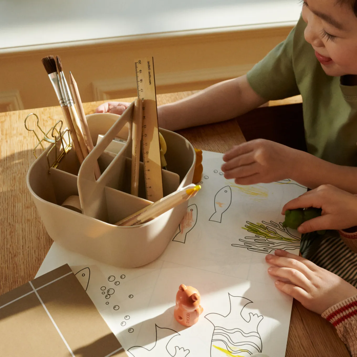 Die Box besticht durch ihr stilvolles dänisches Design und besteht zu 60% aus recyceltem Plastik, was sie nicht nur funktional, sondern auch umweltfreundlich macht. Ob im Kinderzimmer, im Wohnzimmer oder im Arbeitsbereich – der Organizer von Liewood bringt Ordnung und Stil in jeden Raum.