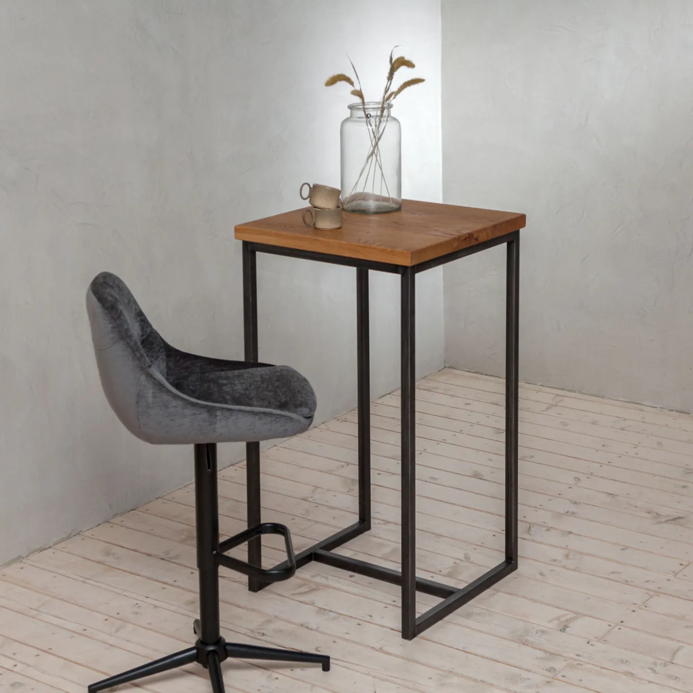 Bitte hinterlasse uns im Bestellvorgang eine Notiz mit deiner Wunschhöhe und der Oberflächenbehandlung, die du bevorzugst. Zur Info: Auf dem Foto ist der Bartisch 100 cm hoch.