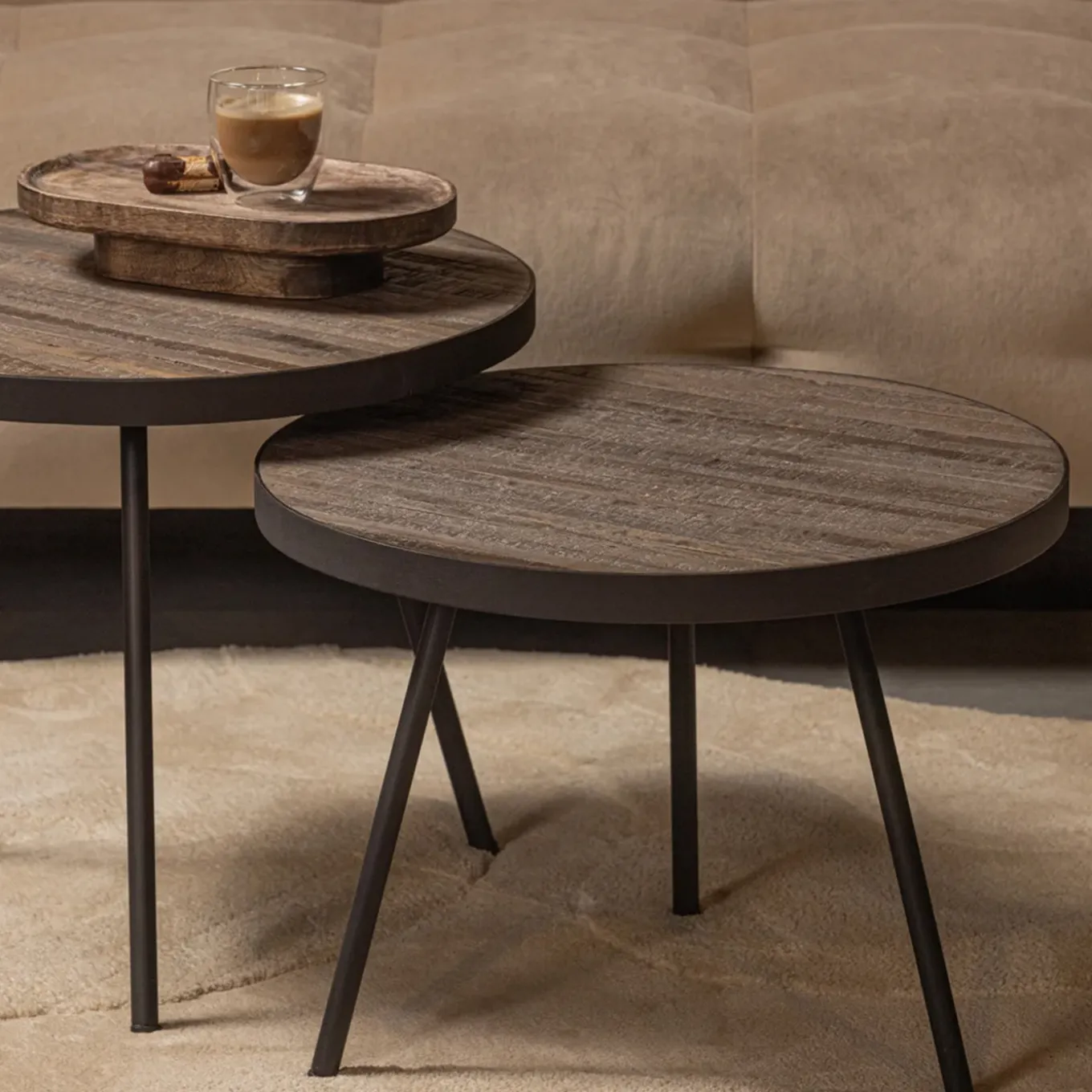 Beistelltisch – Stilvolle Kombination aus recyceltem Teakholz und mattschwarzem Gestell