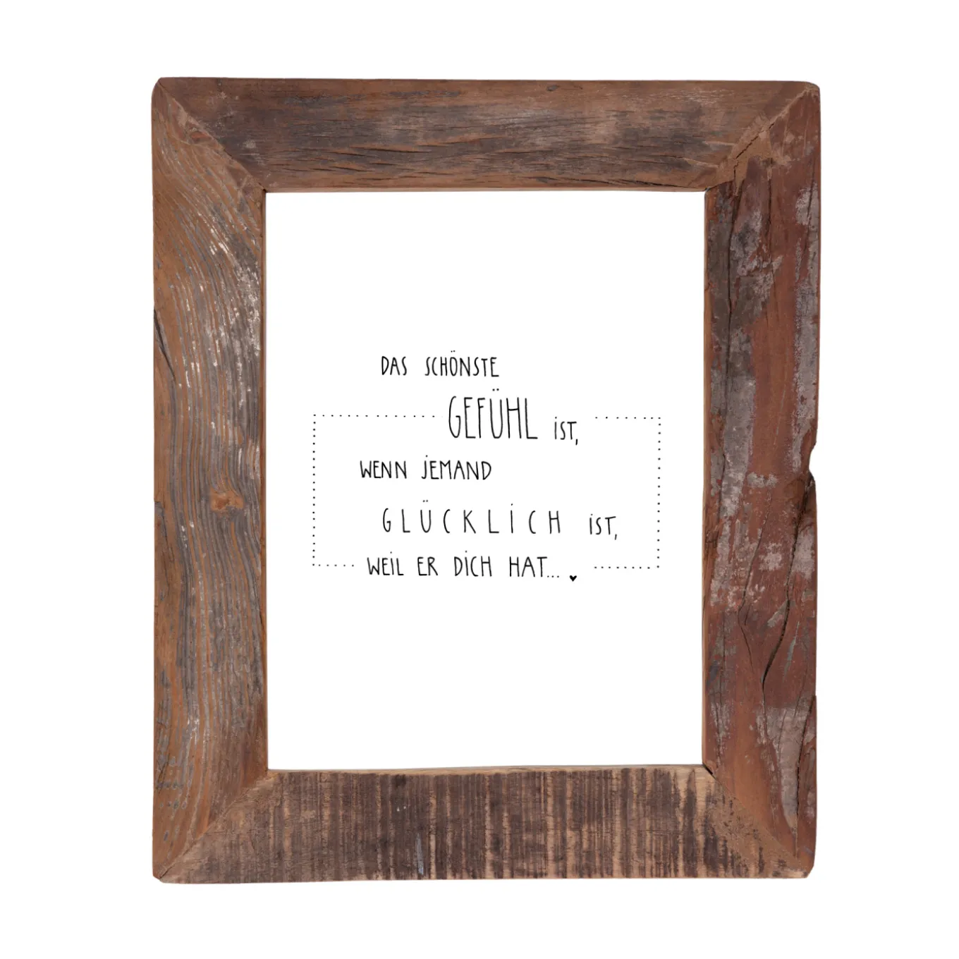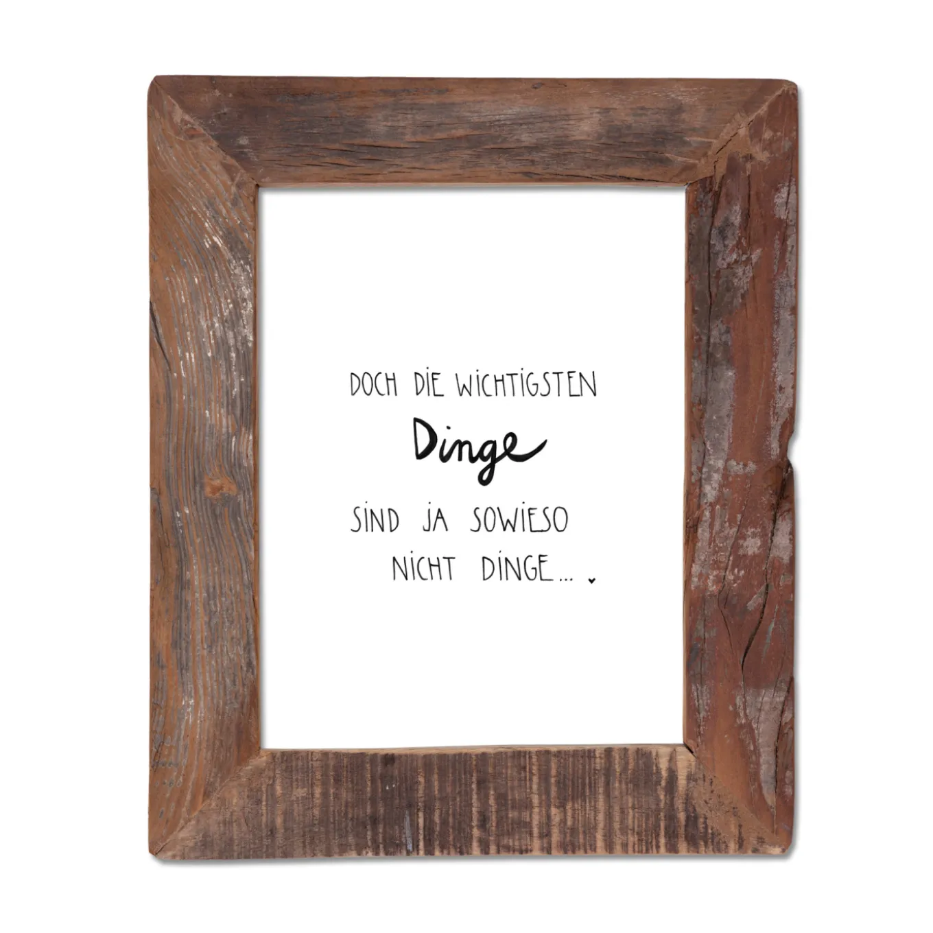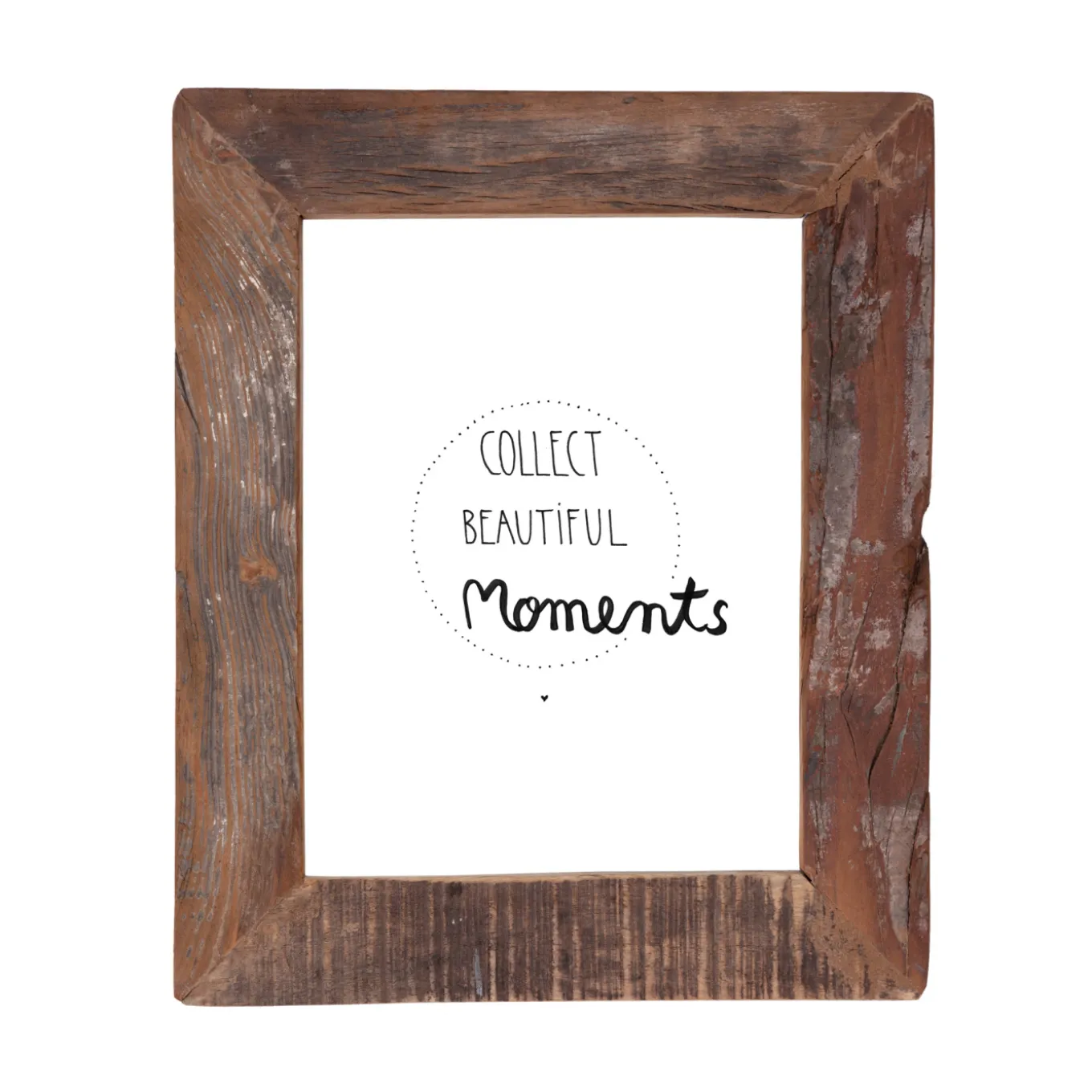 Dieser eckige Holzbilderrahmen bietet Platz für Fotos, Postkarten, Malereien oder was auch immer du gerne in Szene setzen möchtest. Das Holz wirkt natürlich und robust und passt zu unterschiedlichen Einrichtungsstilen: ob ein Loft im Industrial Style, ein romantisches Landhaus oder eine kleine Stadtwohnung im Vintage-Look – der Bilderrahmen ist überall ein wunderschönes Accessoire.