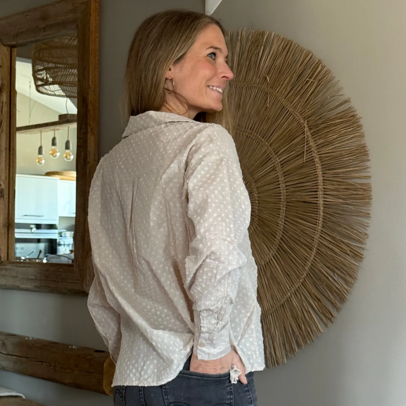 Hergestellt aus 100 % Baumwolle bietet dir die Bluse ein atmungsaktives, angenehm weiches Tragegefühl. Ideal für warme Tage oder als leichte Schicht im Frühling und Sommer – und dabei immer stilvoll, entspannt und natürlich.