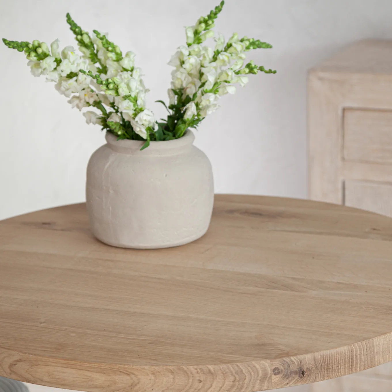 Die Tischplatte auf dem Beispielfoto ist Ø: 80 cm groß.