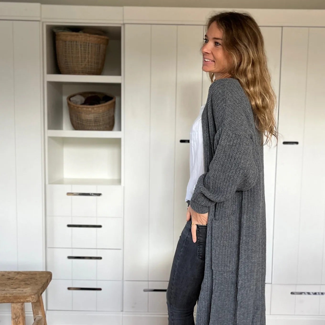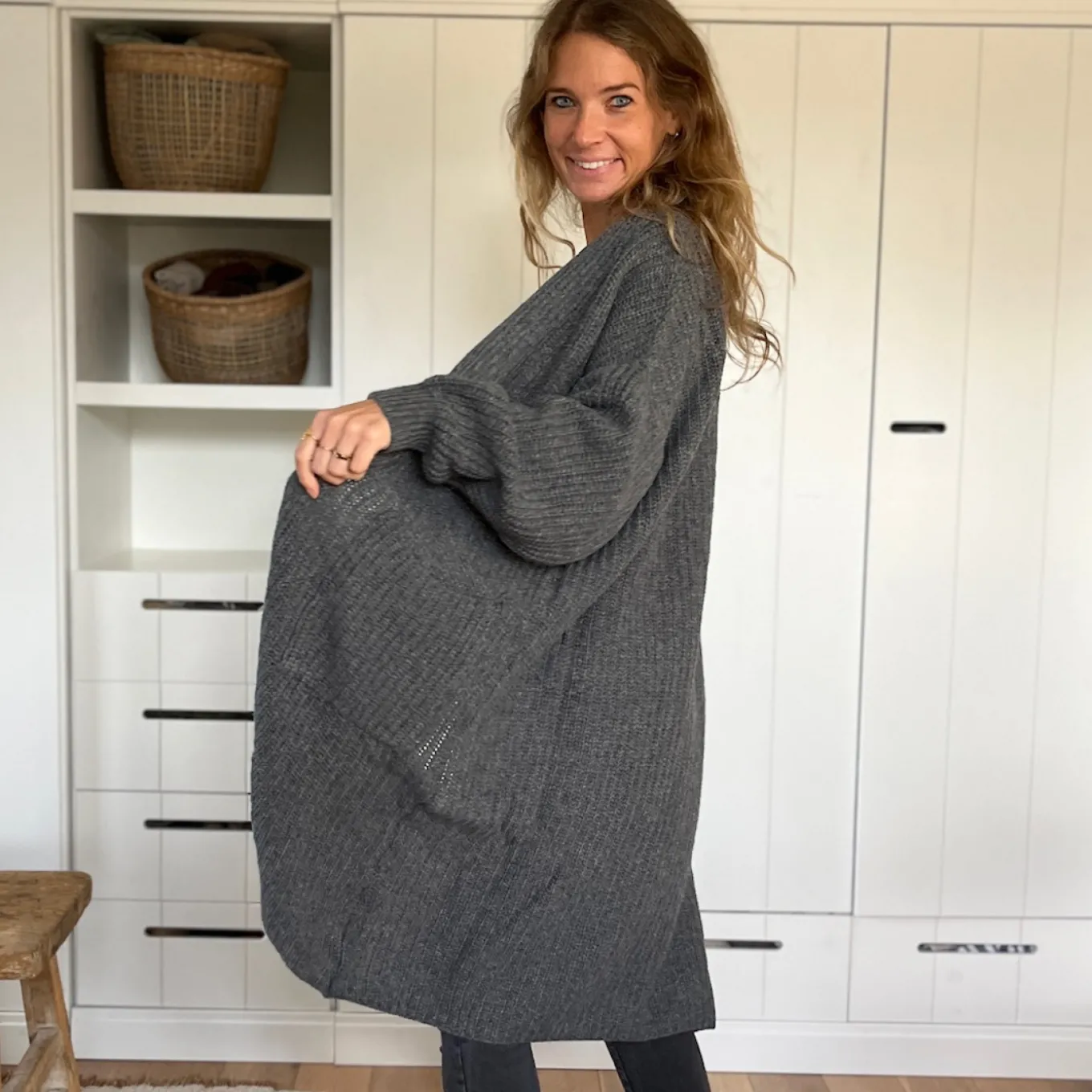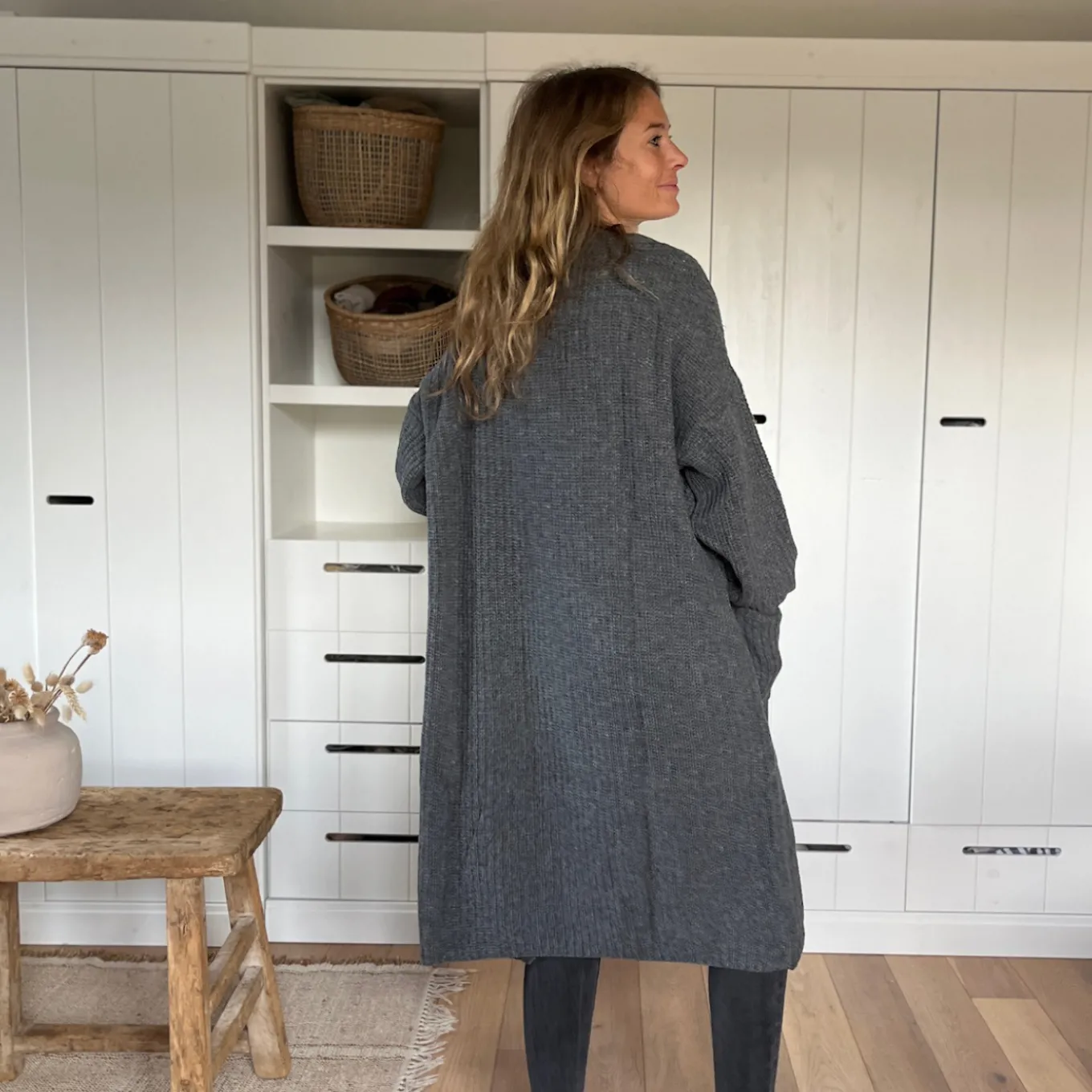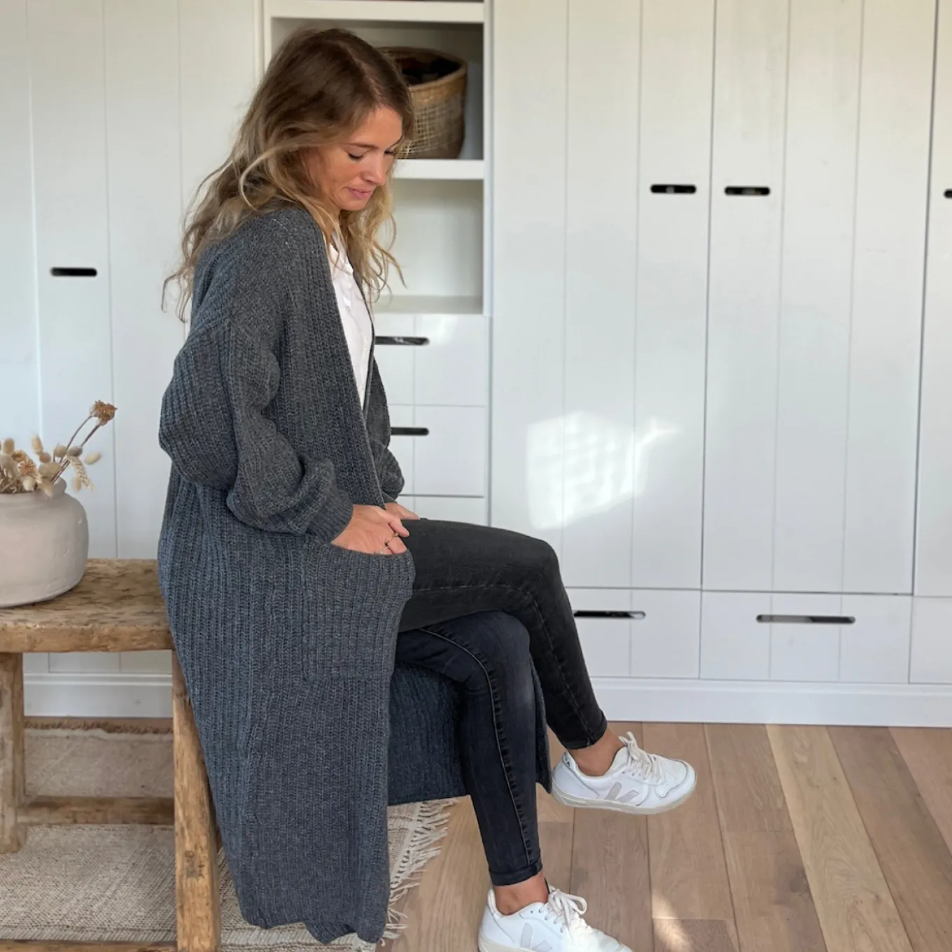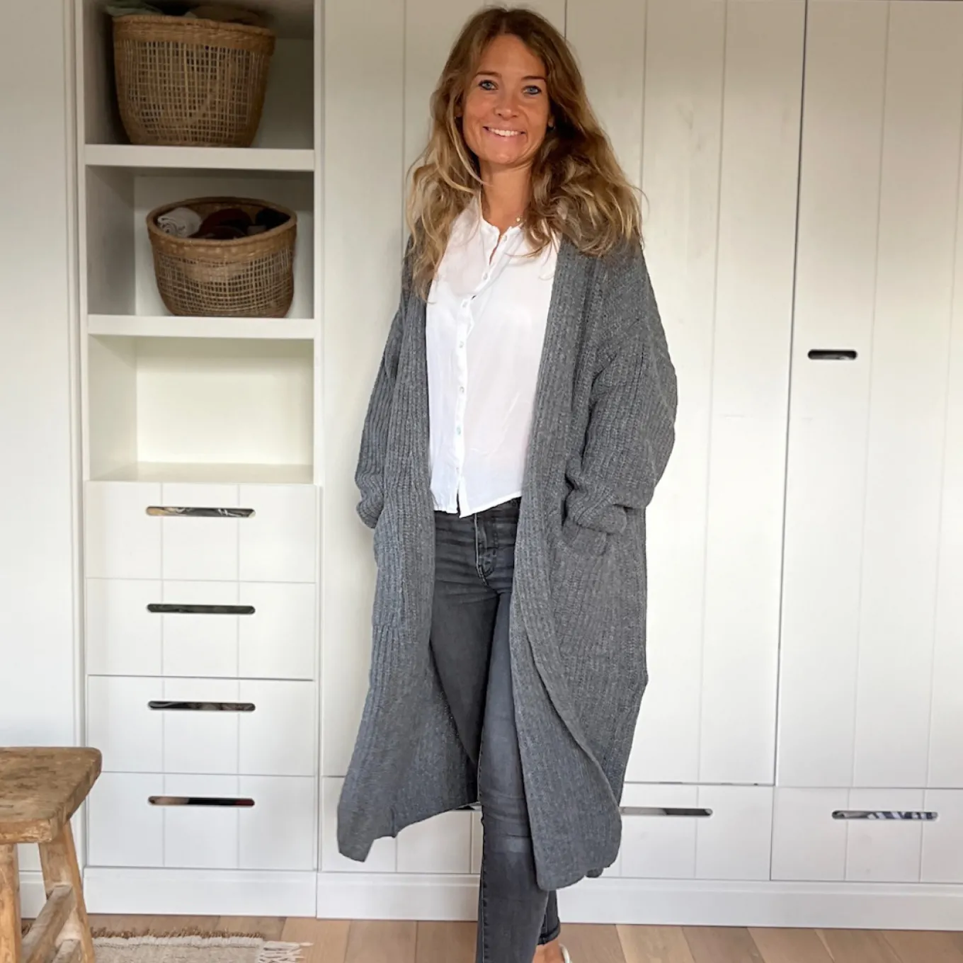 Kuschlige Herbst- und Wintertage werden jetzt noch schöner mit unserer langen, grobgestrickten Jacke! Sie ist nicht nur super weich und gemütlich, sondern verfügt auch über praktische Taschen. Hol dir jetzt den perfekten Begleiter für kalte Tage und genieße den Komfort in vollen Zügen!