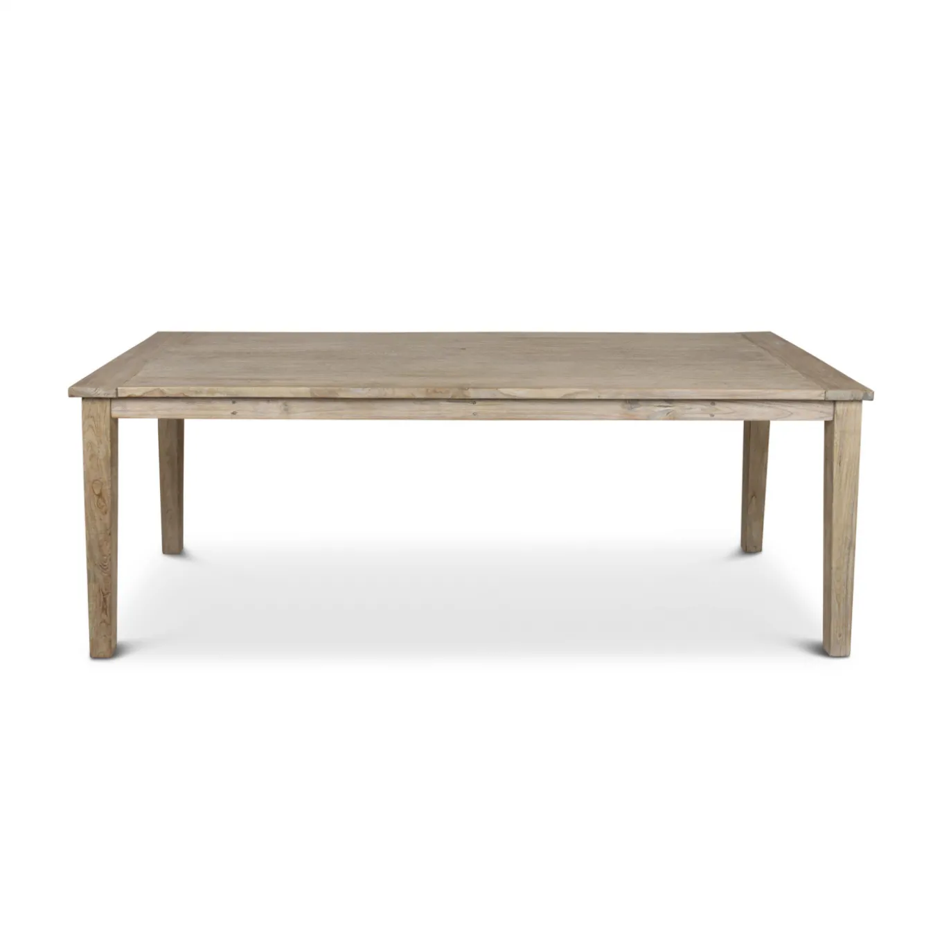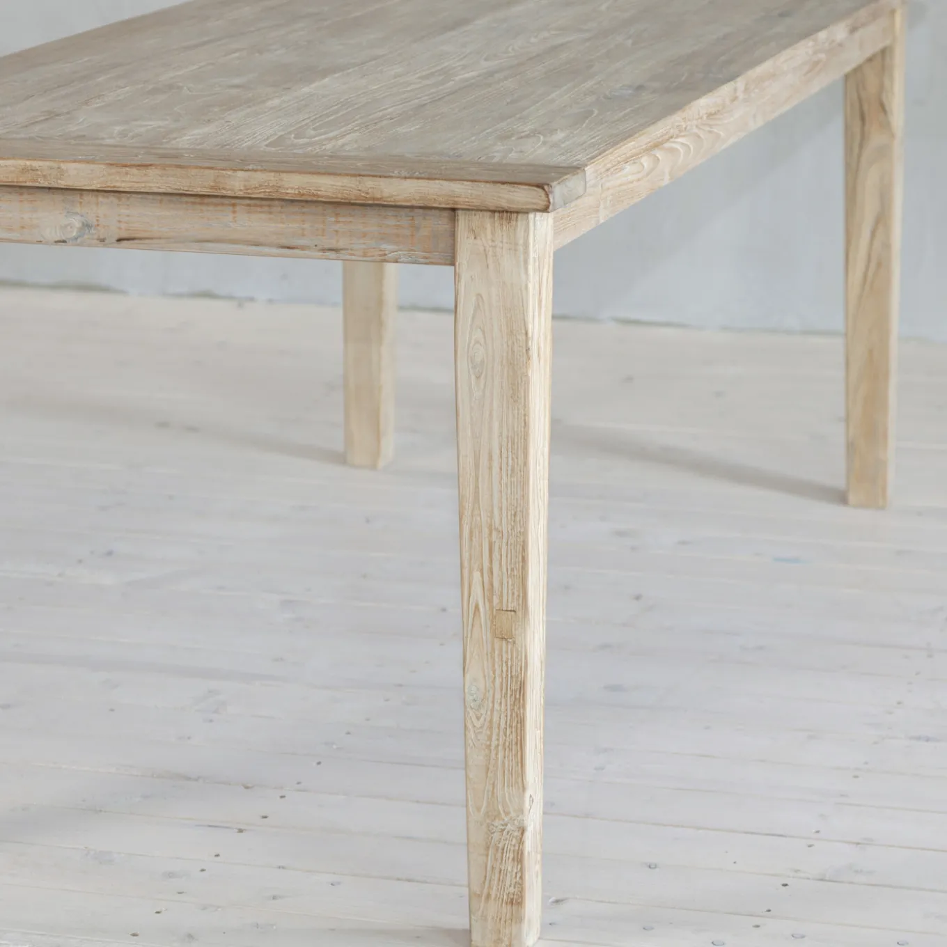 Dieser hochwertige Holztisch bringt Gemütlichkeit in dein Zuhause. Durch sein geradliniges Design kann er mit unterschiedlichen Einrichtungsstilen kombiniert werden. Ob in einem klassischen Landhaus, einem skandinavischen Holzhaus oder in einer modernen Stadtwohnung – der Holztisch fügt sich in fast jedes Wohnumfeld ein. Seinen skandinavischen Charme bekommt der Teak-Tisch durch die Tischoberfläche im Whitewash-Look. Das Holz ist unbehandelt – somit ist jeder Tisch, durch seine Risse und Äste im Holz, ein Einzelstück. Der Tisch ist ca. 79 cm hoch, die Beine kannst du aber selbstverständlich kürzen.