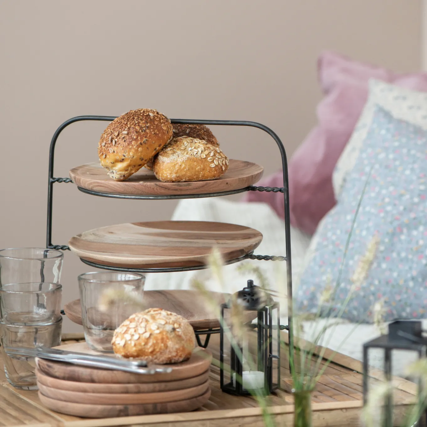 Romantisch, hübsch und einfach ein wunderschönes Accessoire im Landhaus-Look. Das Etagere aus Metall kann einfach mit deinen Lieblingstellern bestückt werden. Egal ob Holzteller, Keramik aus dem Urlaub oder Omas Porzellan. Oder auch ein bunter Mix!
