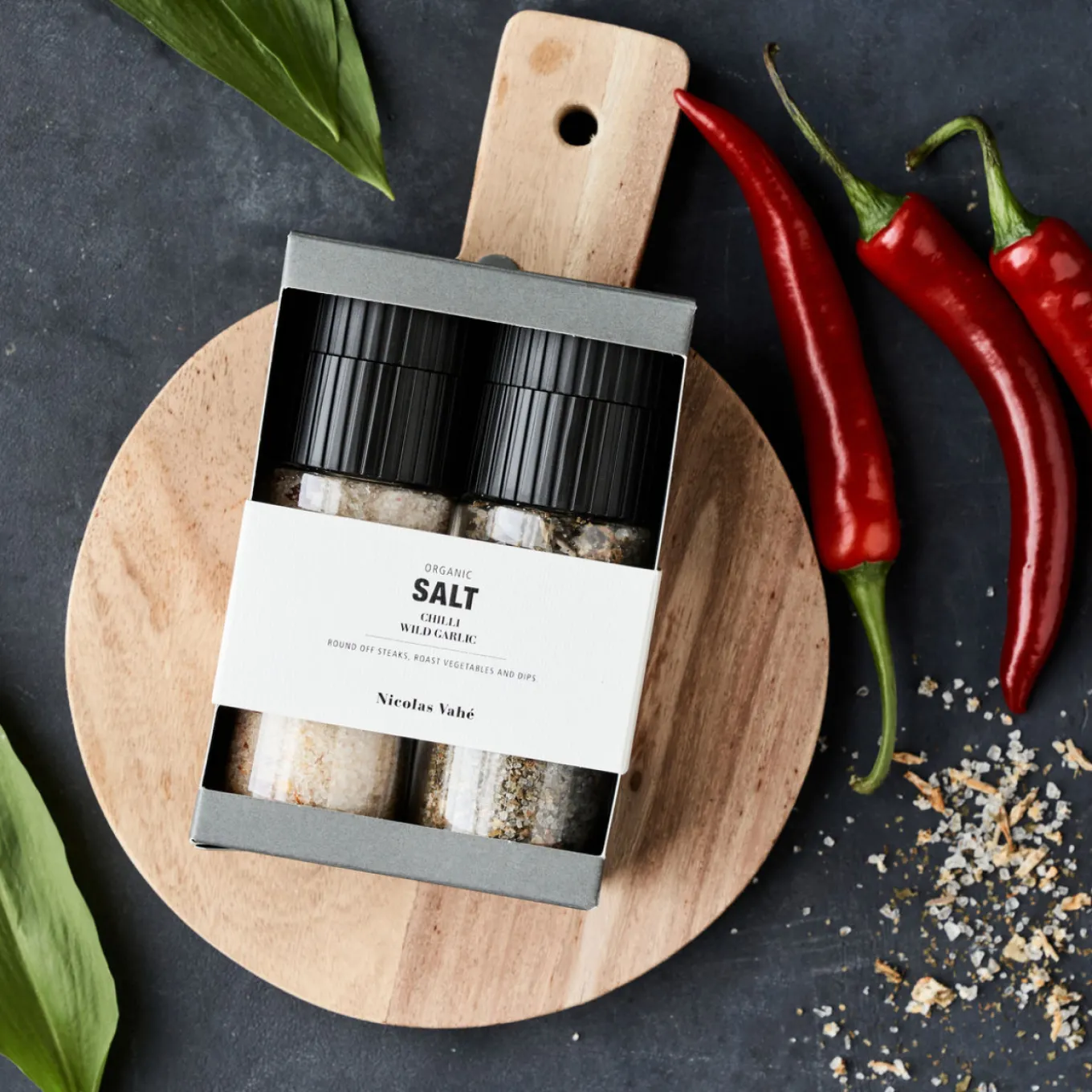 Mit dieser Geschenkpackung von Nicolas Vahé bekommst du Salz und Gewürze, um deine Steaks, Bratgemüse und Dips zu verfeinern. Die biologische Salz- und Chilimischung gibt deinen Gerichten einen Hauch von Würze und die biologische Salz- und Knoblauchmischung verleiht deinen Steaks, Bratkartoffeln und Dips eine dezente Knoblauchnote. Überrasche die Gastgeberin des Abends, einen Freund oder Nachbar mit dieser Geschenkpackung von Nicolas Vahé, denn jeder liebt eine Überraschung der kulinarischen Art.