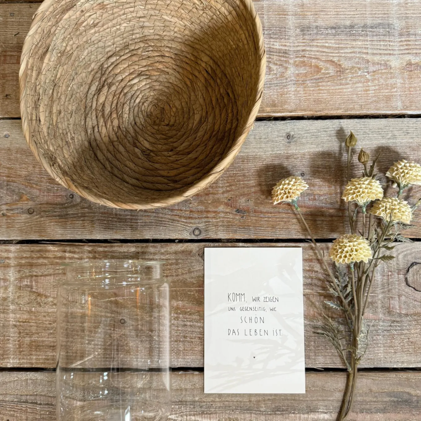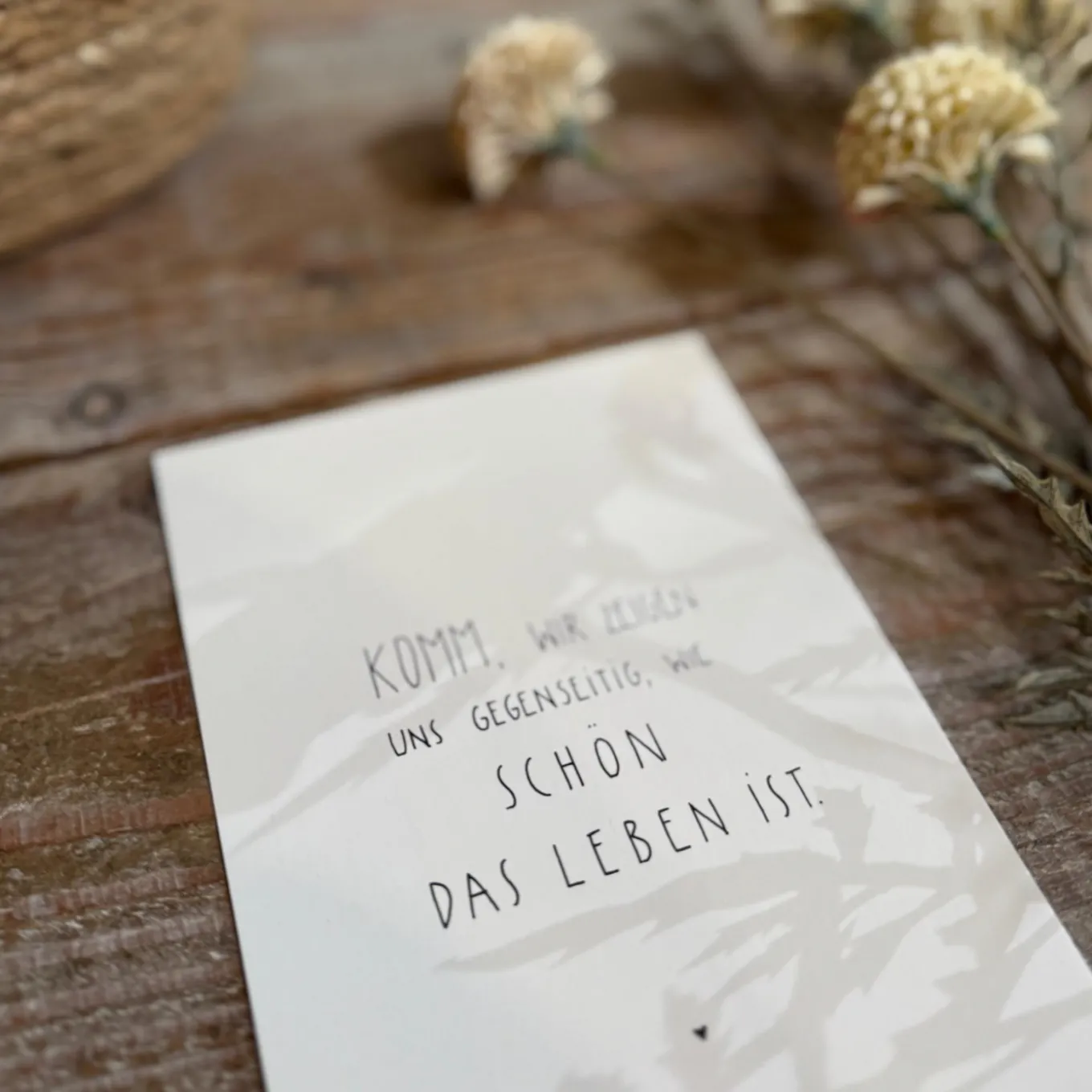 - Handgeschriebene Karte – Mit der Botschaft: „Komm, wir zeigen uns gegenseitig, wie schön das Leben ist.“