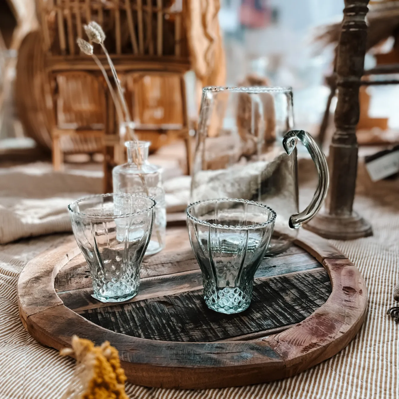 Mit dieser wohlgeformten Kanne aus Glas mit Henkel kannst du deinen Gästen leckere Getränke servieren. Wenn du die Kanne mit selbstgemachter Limonade oder frisch gepressten Säften füllst, wird der Tisch schön bunt! Die Glaskanne ist natürlich nicht nur praktisch, sondern auch schön anzusehen. Du kannst die Kanne natürlich auch als Vase für hübsche Blumen verwenden.