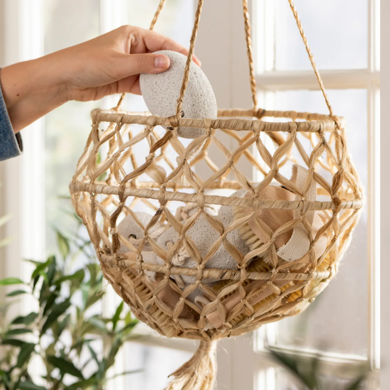 Dieser Hängekorb im Boho Style strahlt Wärme und Gemütlichkeit aus. Du kannst den Korb z.B. wunderbar für Krimskrams im Bad benutzen oder in der Küche als Obstkorb.