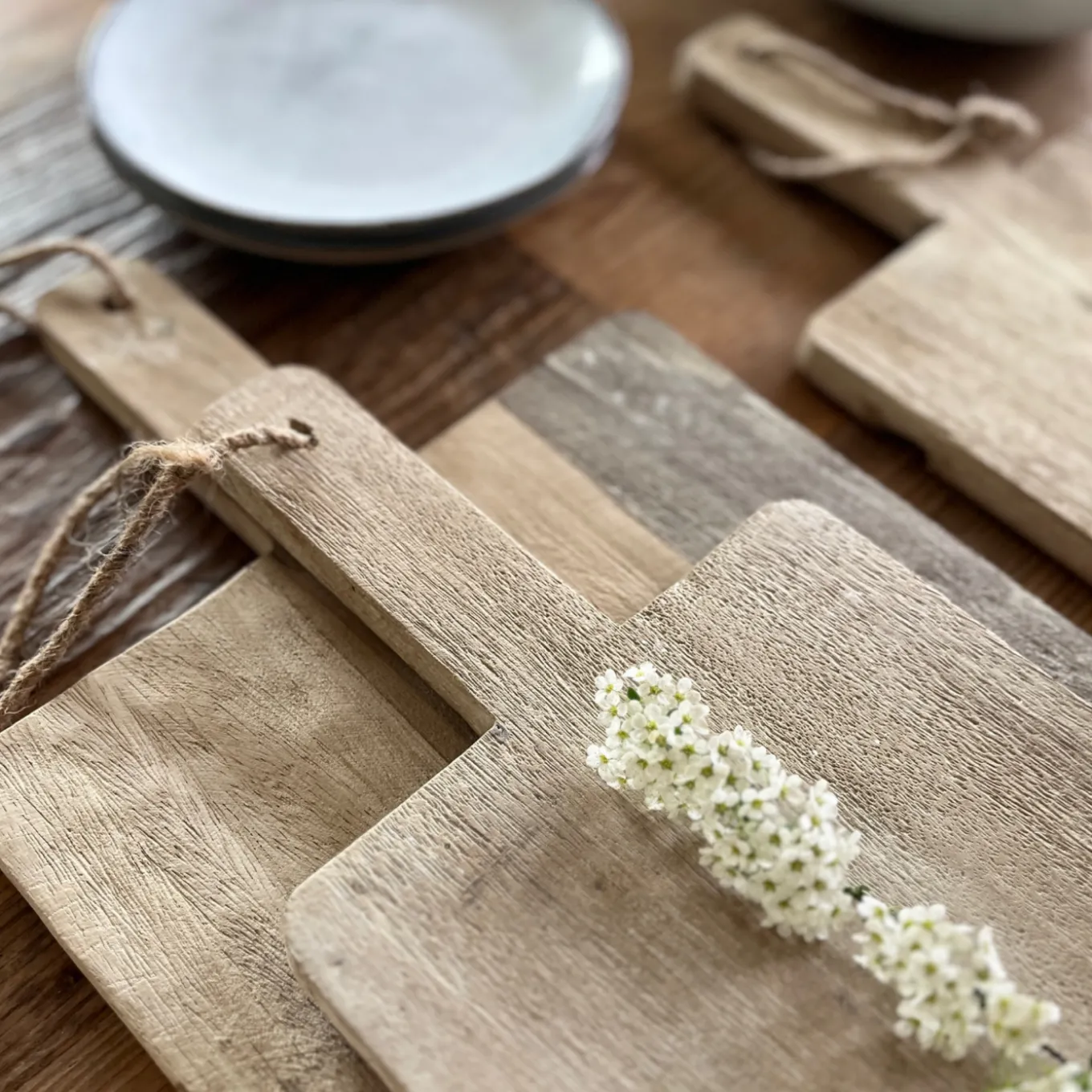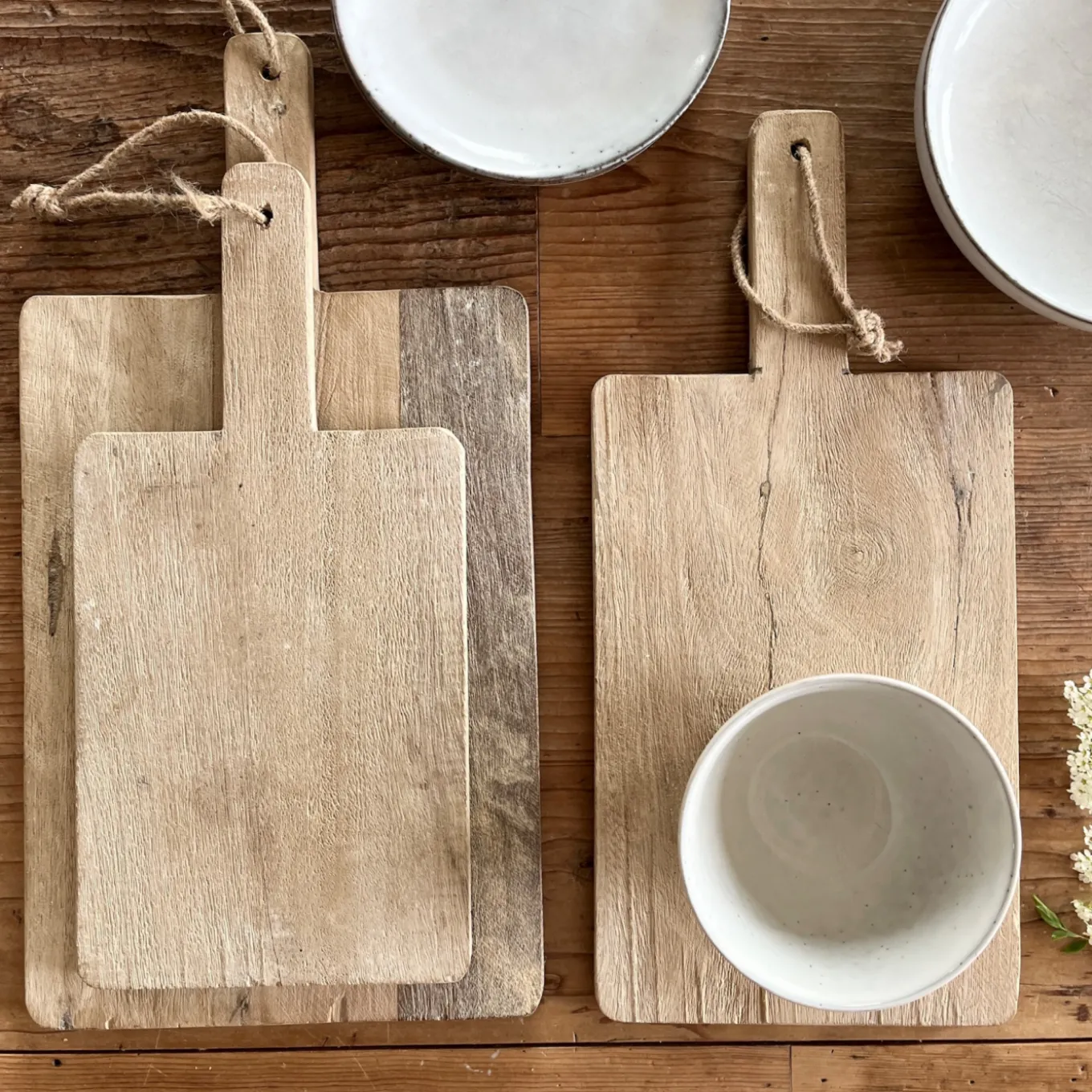 Das Brett ist in drei Größen erhältlich. Da es sich um ein natürliches Material handelt, können Risse im Holz auftreten.