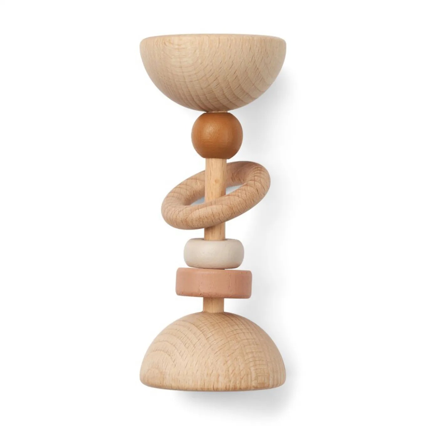Mit dieser kleinen Babyrassel aus Buchenholz kannst du die Sinne deines Babys anregen. Sie fördert die visuelle und auditive Entwicklung und bietet gleichzeitig sensorische und spielerische Erfahrungen. Die kompakte Größe ist perfekt für kleine Babyhände und leicht zu handhaben, was sie ideal für die Kommunikation und Bindung zwischen Eltern und Kind macht. Hergestellt aus 100 % natürlichem und widerstandsfähigem Buchenholz.