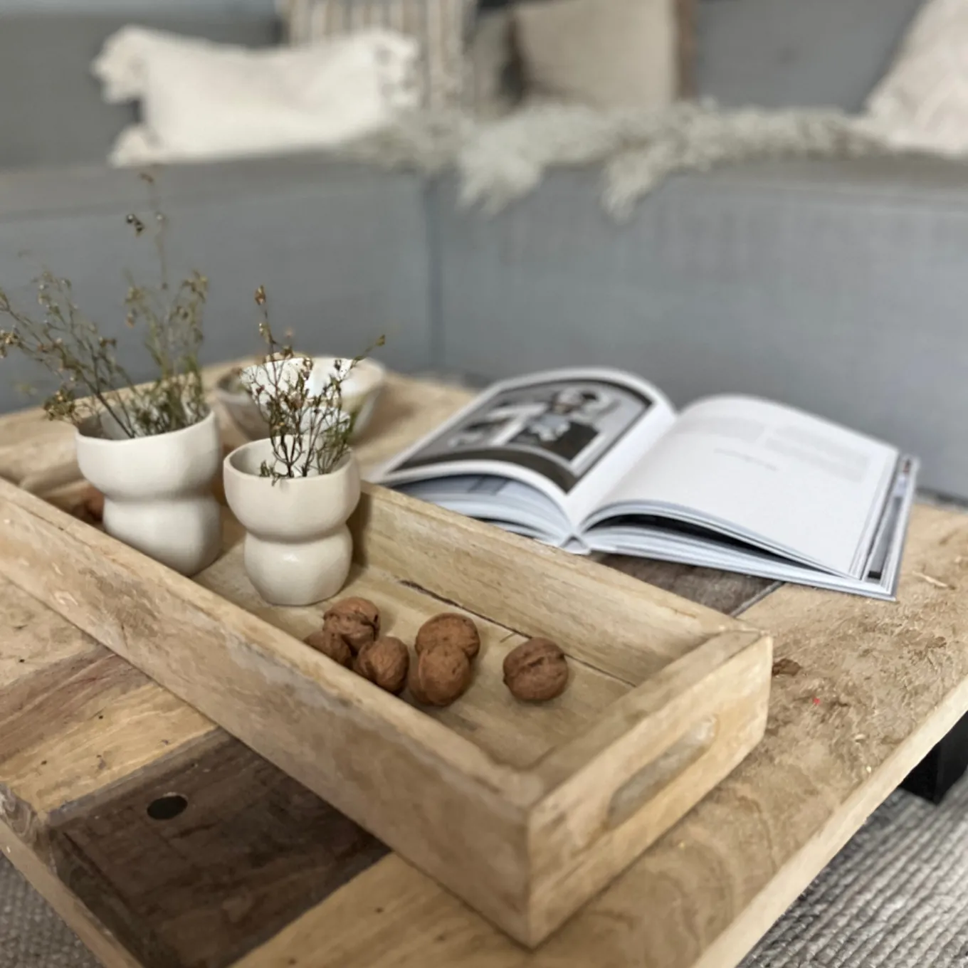 Jedes Tablett ist ein Naturprodukt aus Holz und damit individuell. Risse, Verfärbungen und Unebenheiten sind also möglich.