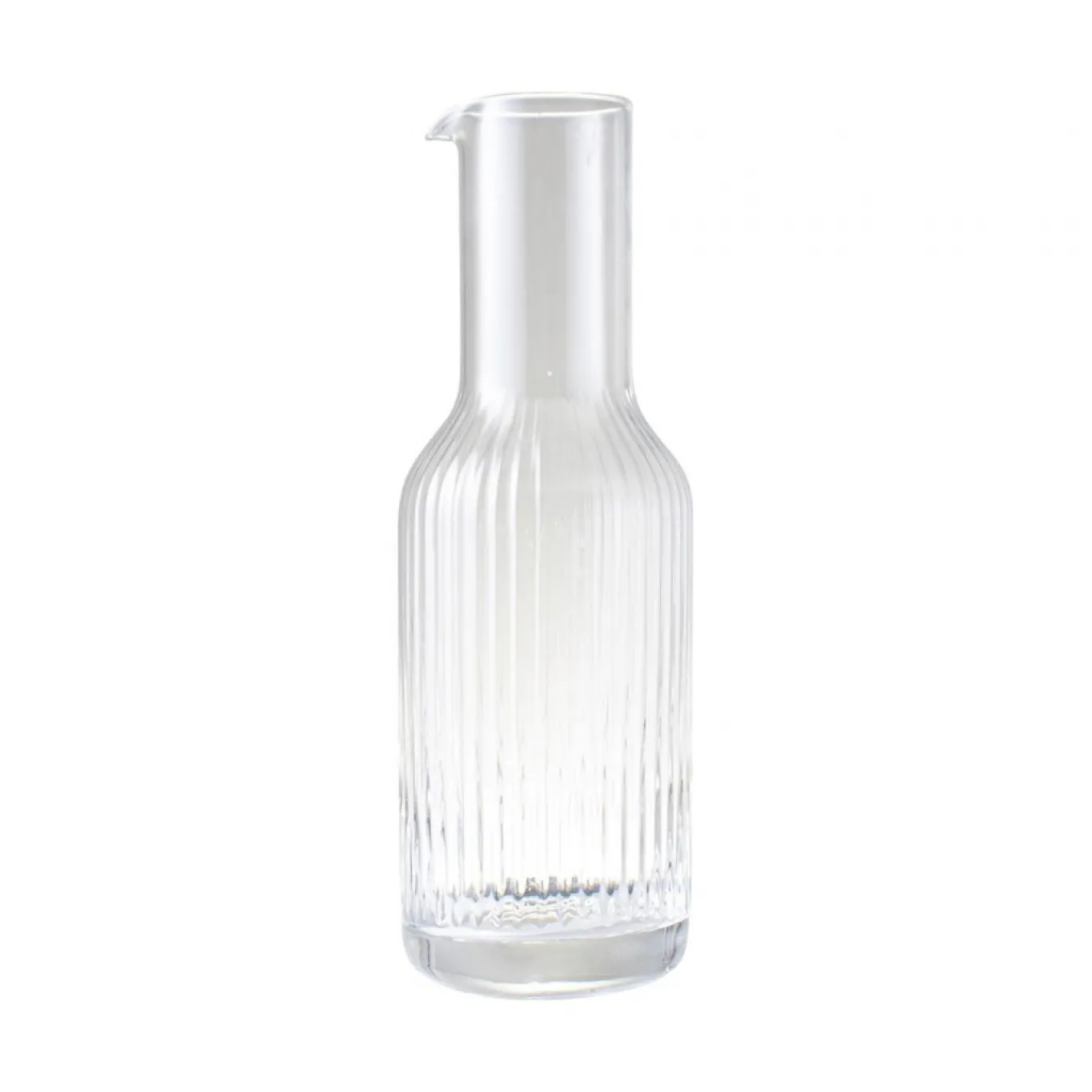 Mit dieser wohlgeformten Kanne aus Glas kannst du deinen Gästen leckere Getränke servieren. Wenn du die Kanne mit selbstgemachter Limonade oder frisch gepressten Säften füllst, wird der Tisch schön bunt! Die Glaskanne ist natürlich nicht nur praktisch, sondern mit ihrer gestreiften Oberfläche auch schön anzusehen.