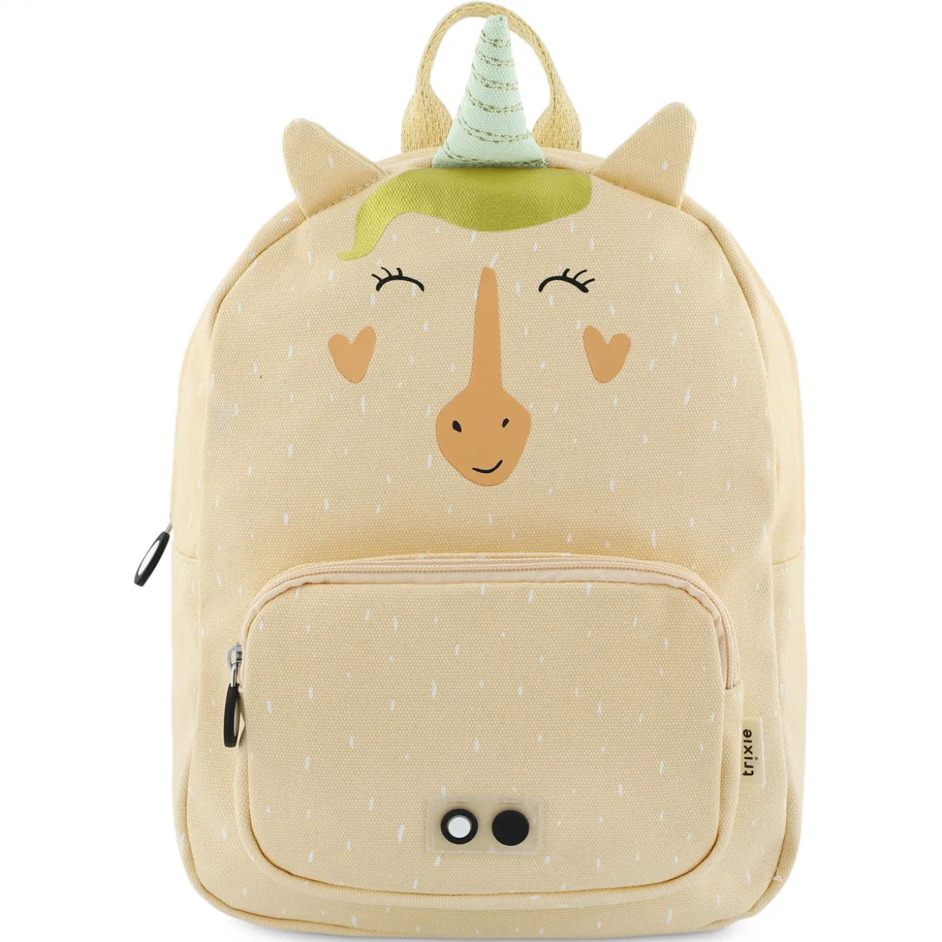 Der niedliche und praktische Rucksack für Kinder hat ein kleines und ein großes Fach. Hier ist Platz für Trinkflasche, Brotdose, Spielzeuge und Co. Natürlich haben die belgischen Hersteller auch auf den Tragekomfort geachtet: die verstellbaren Schulterriemen sind gepolstert und der Brustgurt verhindert, dass die Schulterriemen runterrutschen. Im Kindergarten angekommen, kann der Rucksack dann einfach am Griff an einen Haken gehängt werden. Und das Beste: sollte es mal auf dem Weg regnen, kein Problem! Der Rucksack ist wasserabweisend. Auch Dreck ist kein Problem, du kannst den Rucksack einfach bei sanfter Spülung in die Waschmaschine geben. Beachte nur: je mehr der Rucksack in der Waschmaschine landet, desto weniger wasserabweisend ist er. Auch wenn das kleine Einhorn mal ausbüxt – dank dem eingenähten Namensschild wird er immer wieder gefunden.