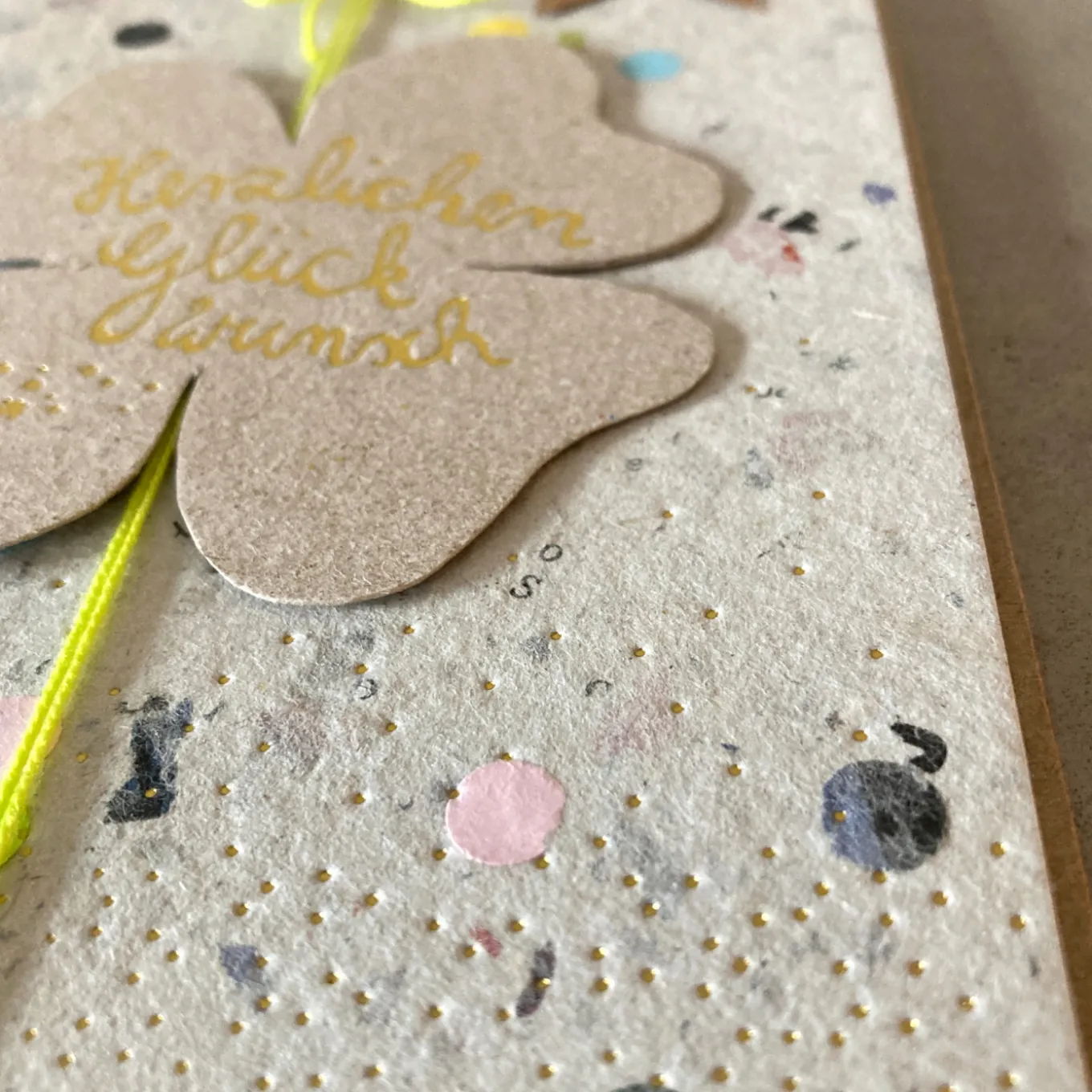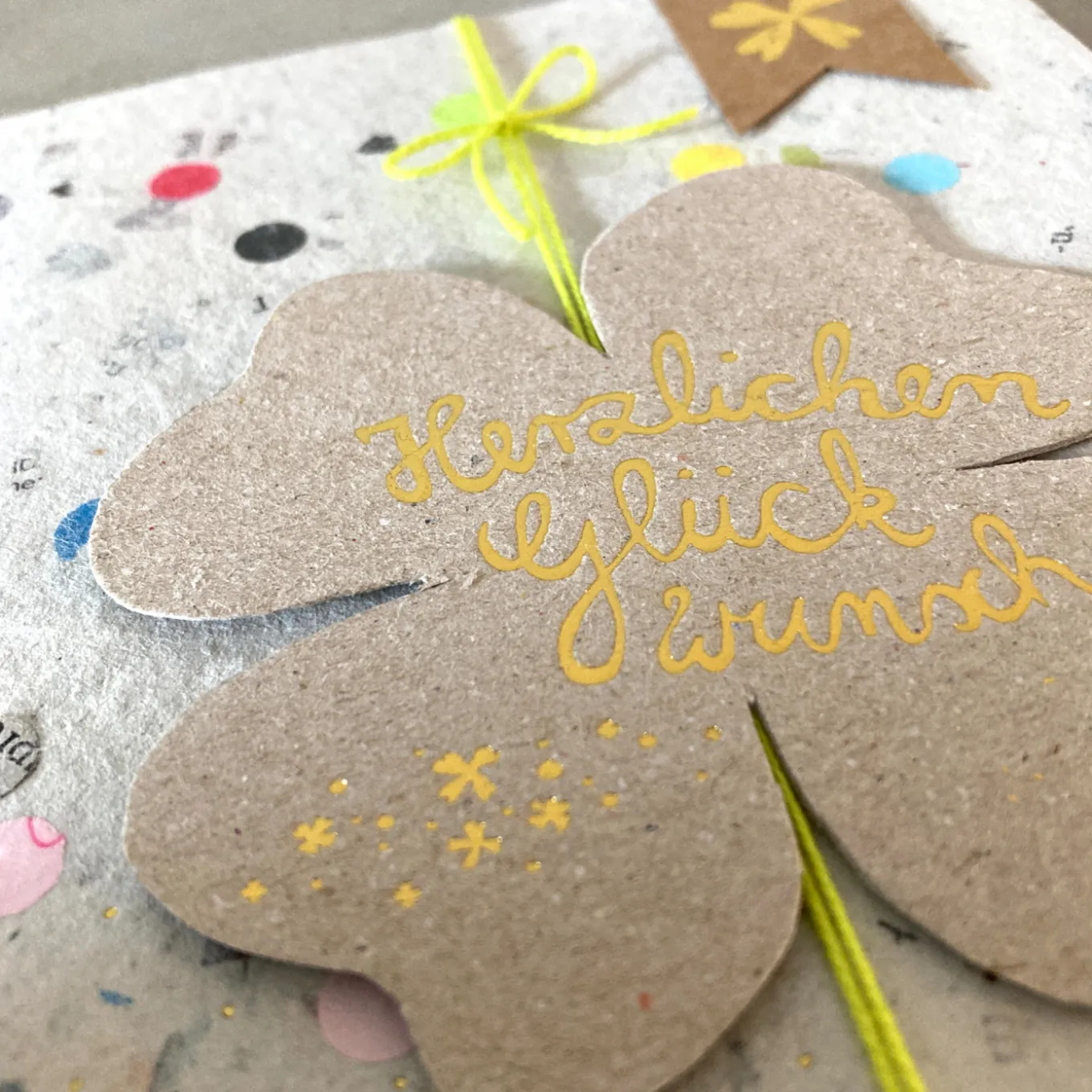 Wir sind große Fans von der Marke Good old Friends. Good old Friends? Das ist ein Rendezvous aus persönlichem Design mit feinem Material. Und das 100% von Herzen! Glücksklee per Post. Eine Karte voller Glück aus handgeschöpftem Papier und feinen Applikationen aus Draht und Papier mit aufgenähten Kleeblättern aus Transparentpapier. Damit das Glück den richtigen Weg findet.