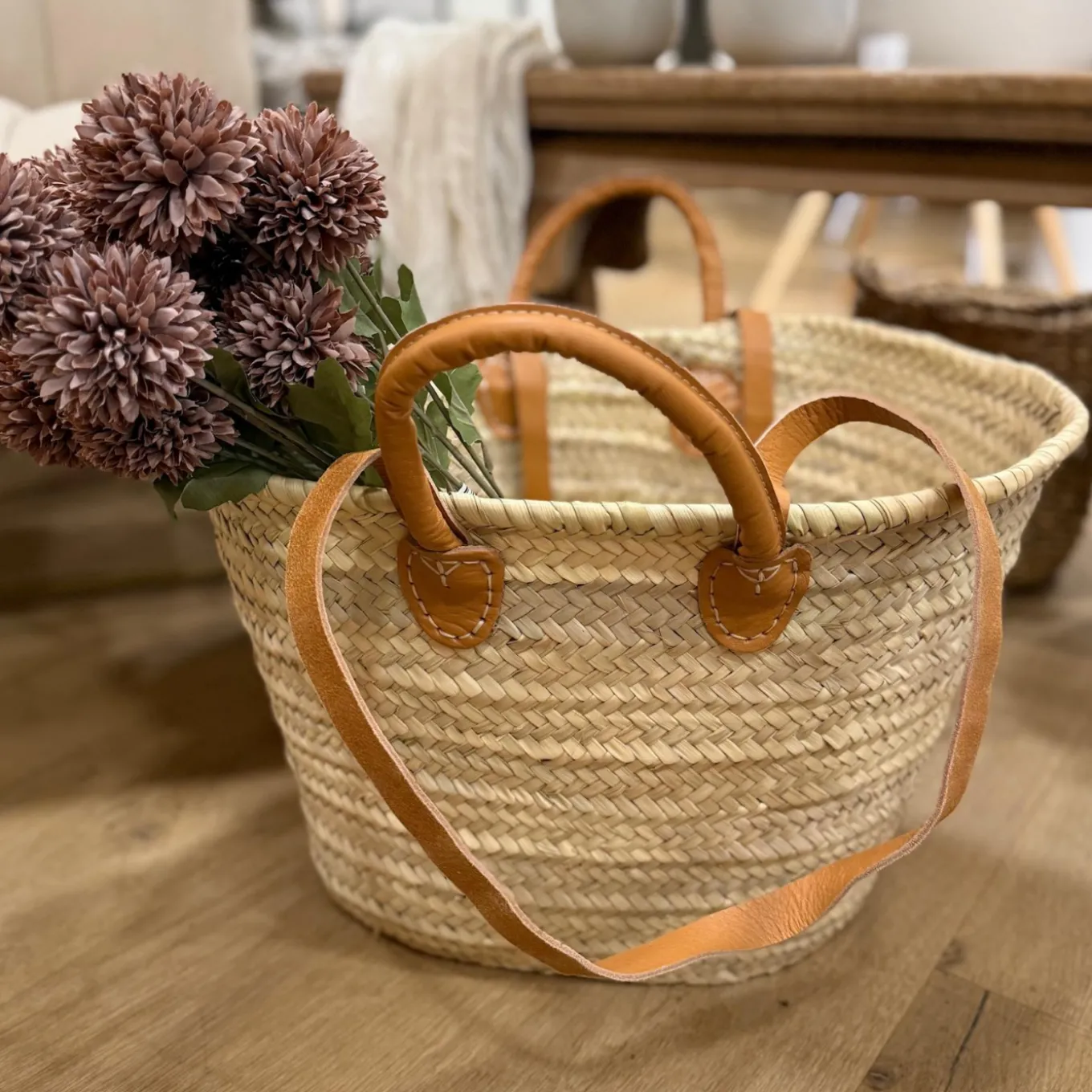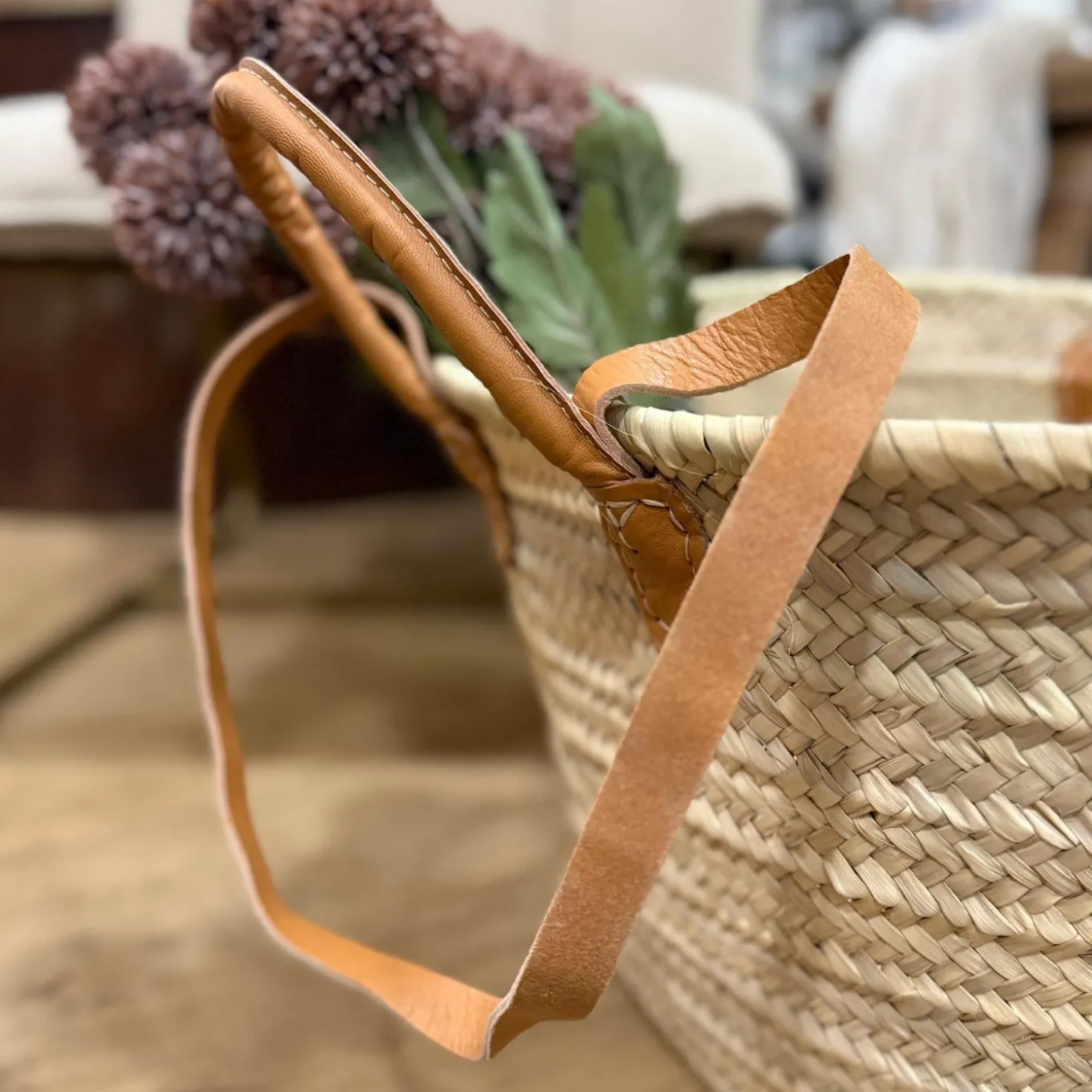 Diese handgefertigte Strandtasche aus Palmblatt kombiniert Funktionalität mit natürlicher Eleganz. Mit ihren hochwertigen Griffen aus echtem Leder und der dichten Flechtung ist sie ein stilvolles Accessoire für den Strand, den Einkauf oder den Alltag. Die Tasche bietet viel Stauraum und überzeugt durch ihr zeitloses Design.