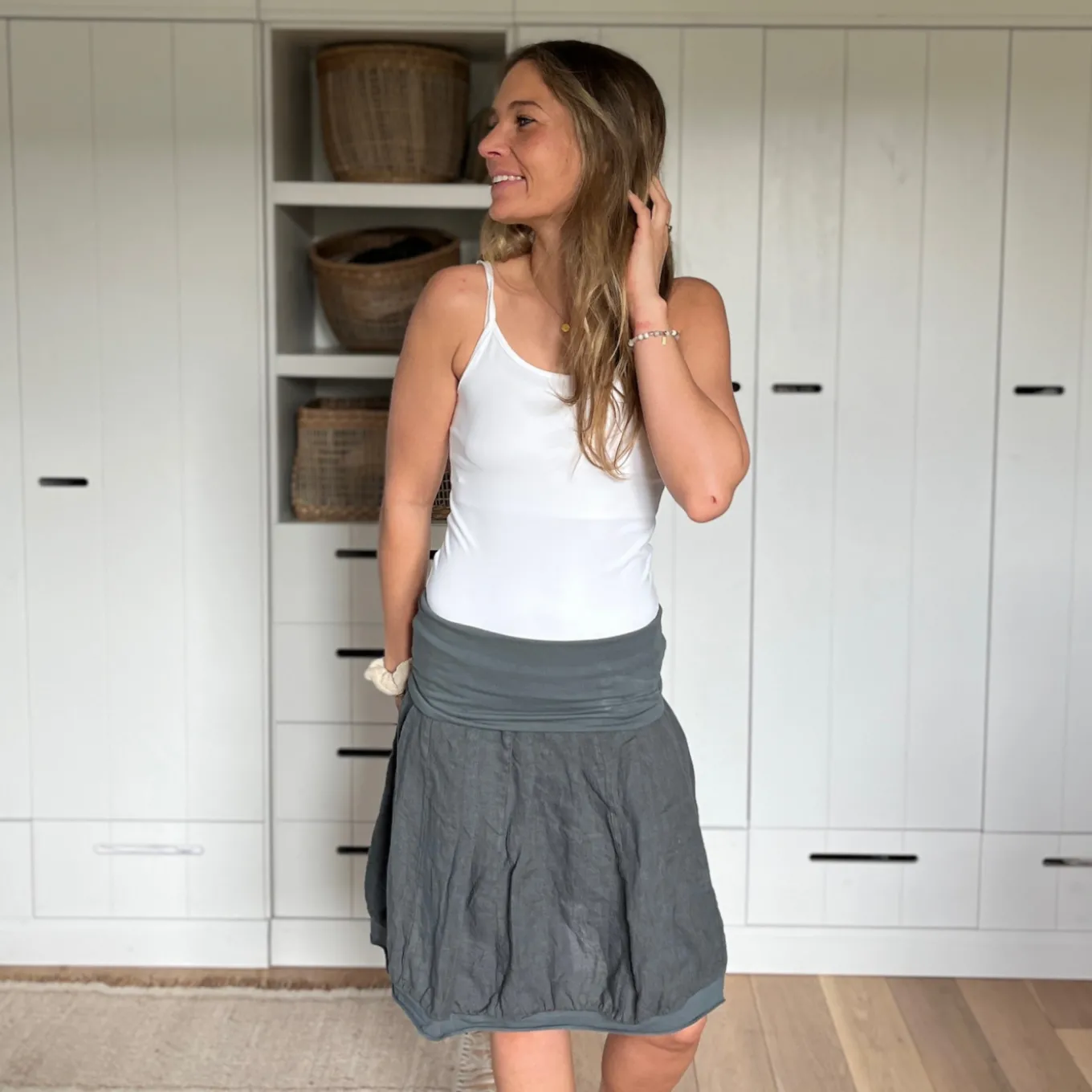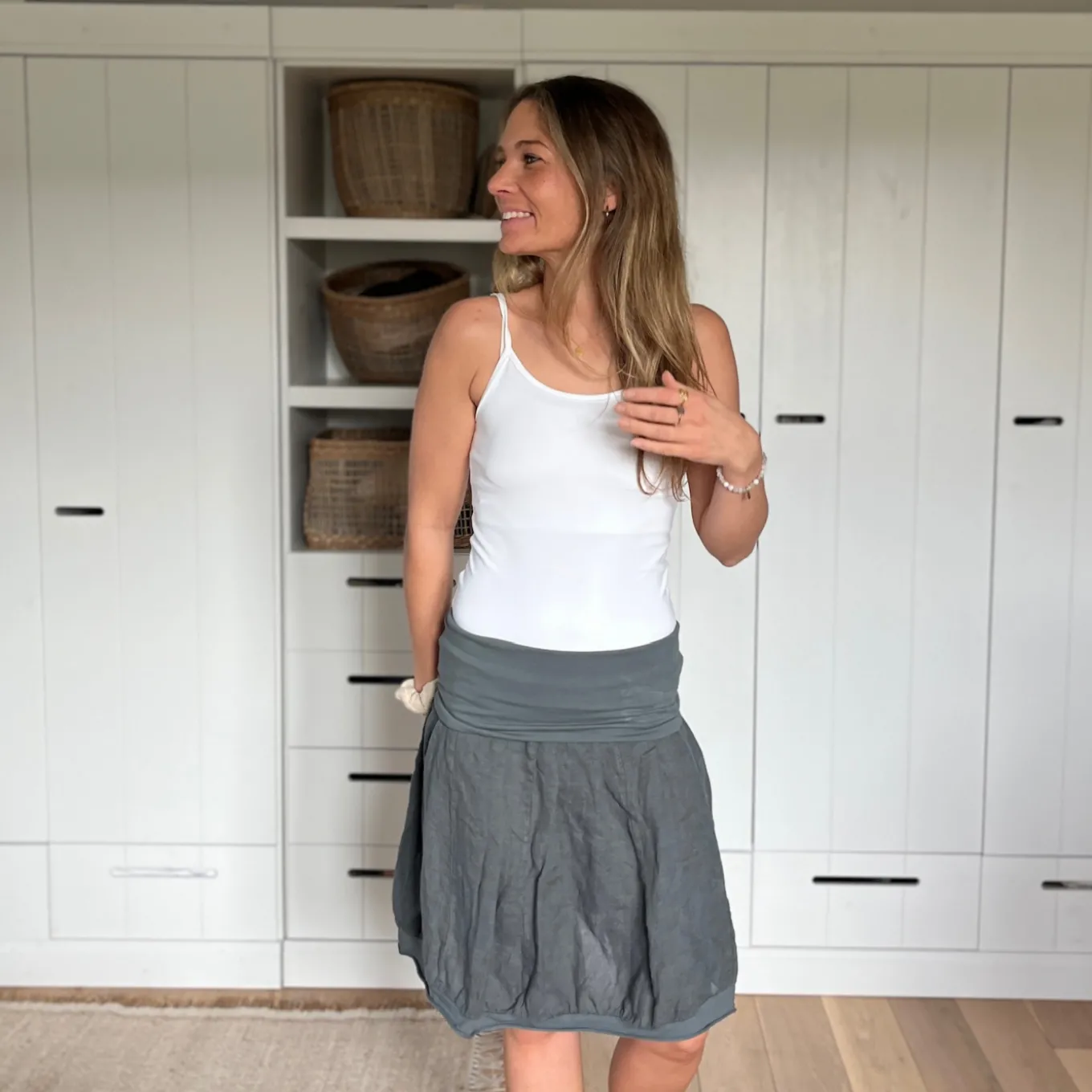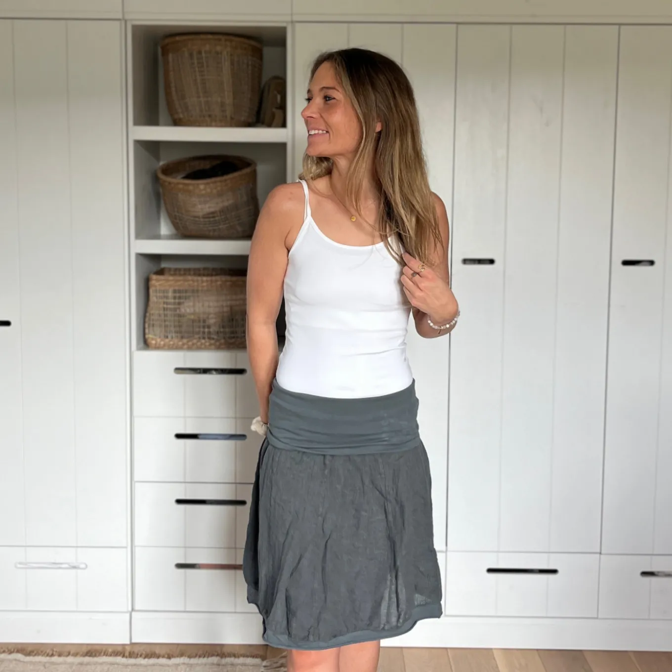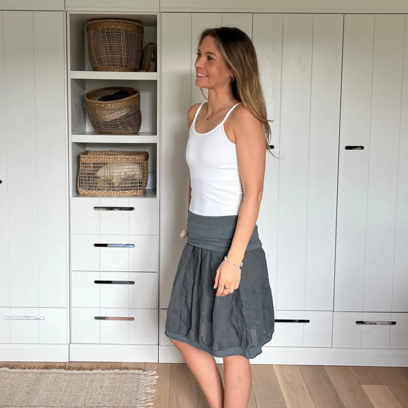 Dieser Leinen Rock ist stilvoll und einfach ein absolutes Wohlfühlprodukt. Der Rock besteht zu 100% aus Leinen und kann von Größe 36-42 getragen werden. Je nachdem wie weit du den Bund einschlägst, kannst du die Länge des Rocks variieren.