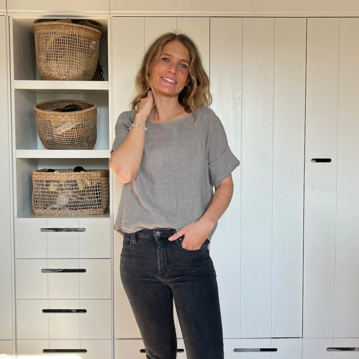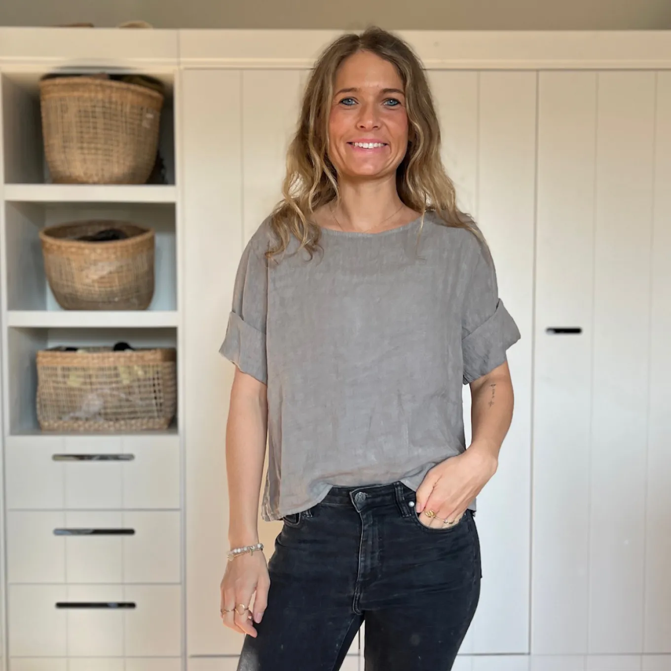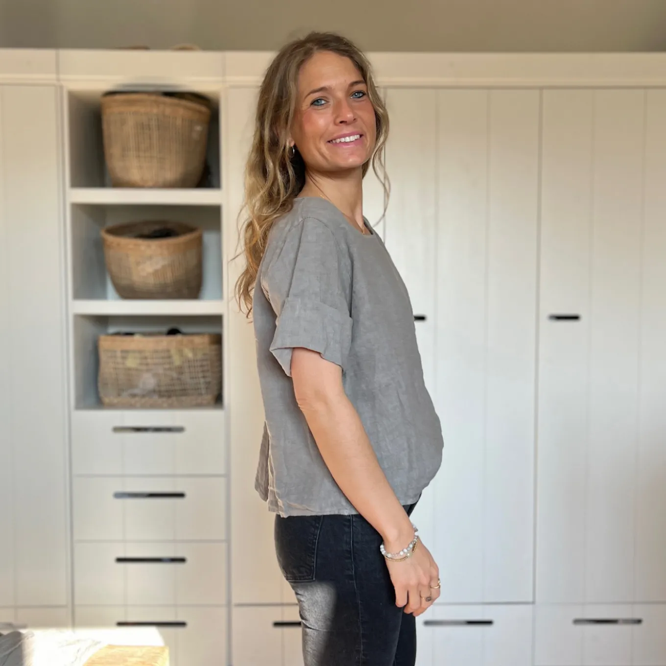 Dieses kurzärmlige Shirt aus 100% Leinen ist einfach nur schön. Das besondere: die Knopfleiste am Rücken. Das perfekte Basic für den Frühling und Sommer.