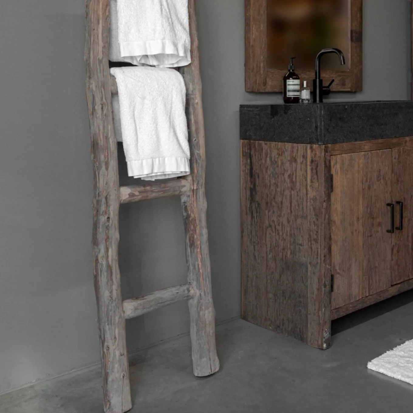 Warum langweilig, wenn es auch spannend geht? Das denken wir uns auch beim Thema Einrichtung. Stell doch mal eine Leiter auf anstatt von Kleiderhaken, Kleiderstange oder Garderobe. Diese Holzleiter ist relativ leicht, sodass du sie flexibel in deiner ganzen Wohnung einsetzen kannst. Die Leiter eignet sich z.B. perfekt für den Einsatz im Badezimmer. Lehne die Leiter aus Holz einfach lässig an die Wand und hänge deine Handtücher oder deine Kleidung daran auf.