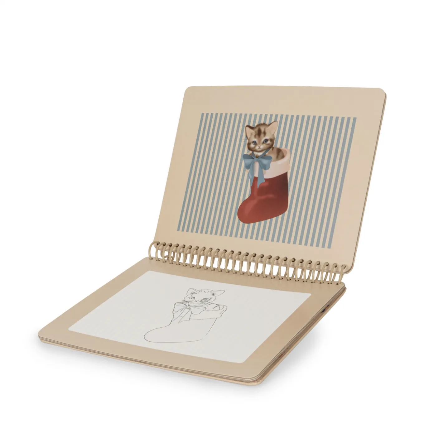 Inspiriert von der unendlichen Kreativität von Kindern, fördert dieses zauberhafte magische Malbuch die Fantasie unserer Kinder. Das magische Malbuch von Konges Sløjd enthält sechs wiederverwendbare Seiten, mit liebevollen winterlichen Zeichnungen und einen nachfüllbaren Wassertankpinsel aus Kunststoff.