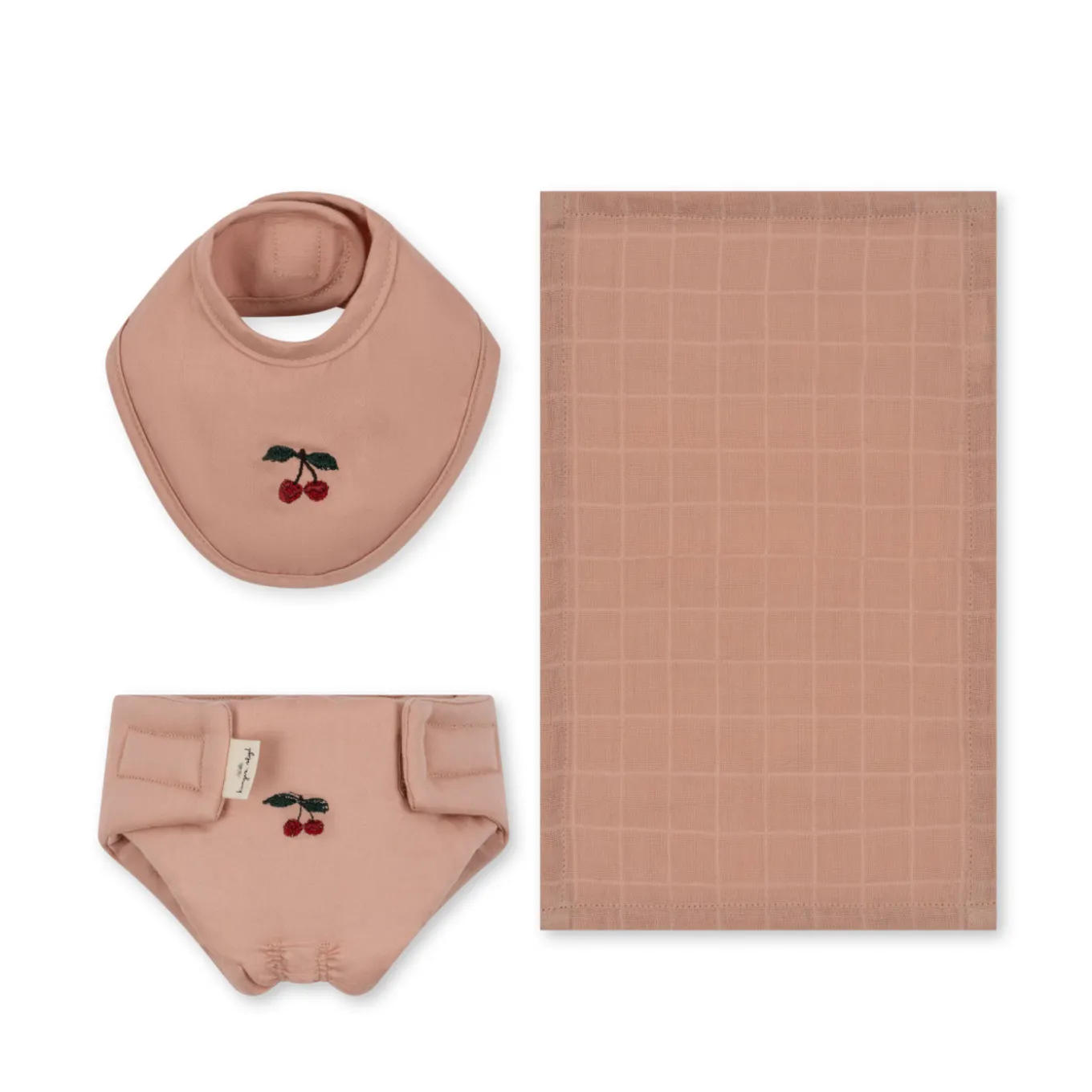 Dieses Puppen-Säuglingsset von Konges Sløjd ist mit einem Lätzchen, einer Stoffwindel mit Klettverschluss, einem Musselin Spucktuch und einer super praktischen Stofftasche ausgestattet. Und das Beste: das Liebervolle Design und die Bio-Qualität der Stoffe.