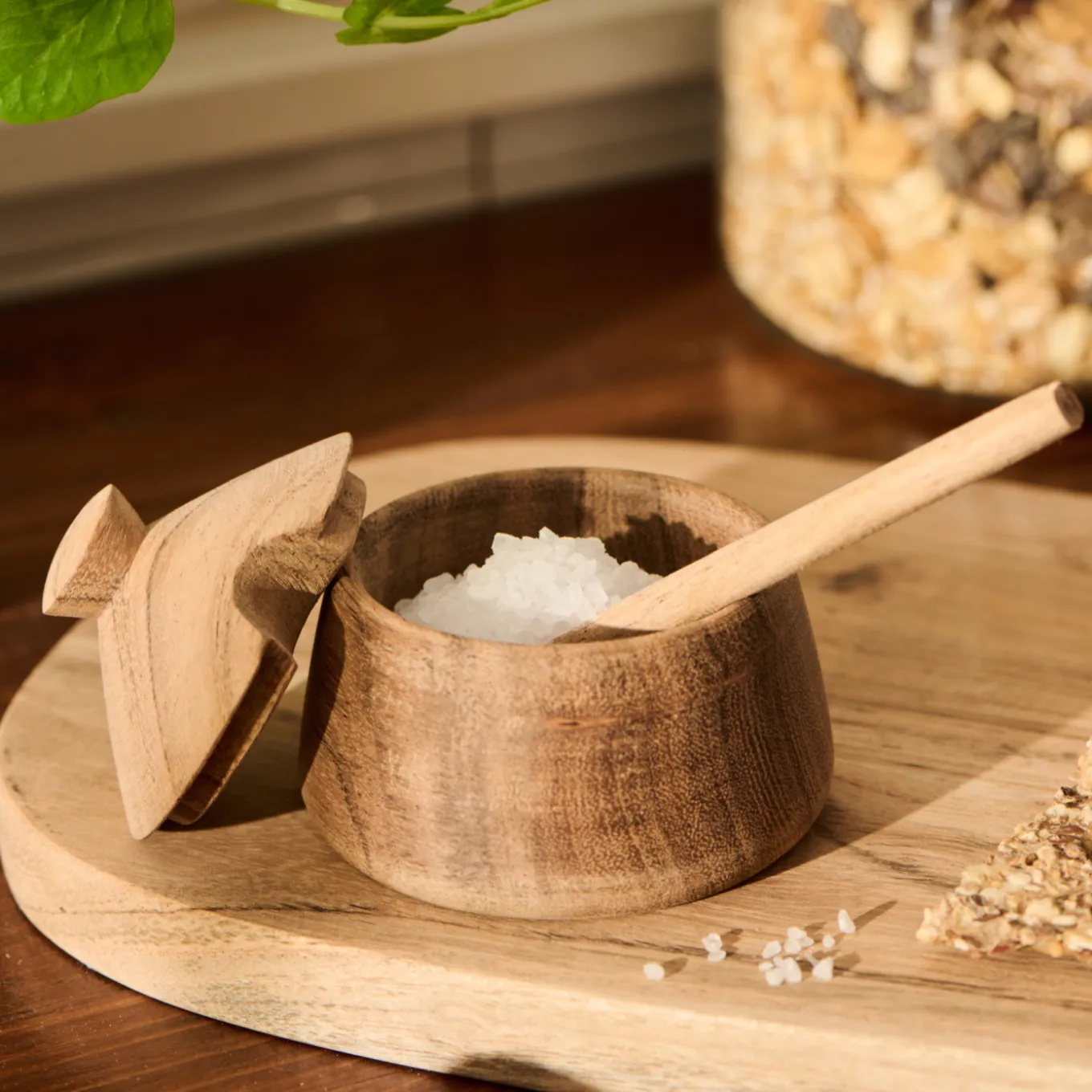 Bewahre Dein Salz stilvoll auf – mit dem Salzgefäß mit Deckel aus Akazienholz von Ib Laursen. Dieses wunderschöne Gefäß kombiniert Funktionalität und skandinavisches Design auf elegante Weise. Das warme, natürliche Akazienholz verleiht Deiner Küche einen rustikalen Charme und sorgt gleichzeitig dafür, dass Dein Salz trocken und geschützt bleibt.