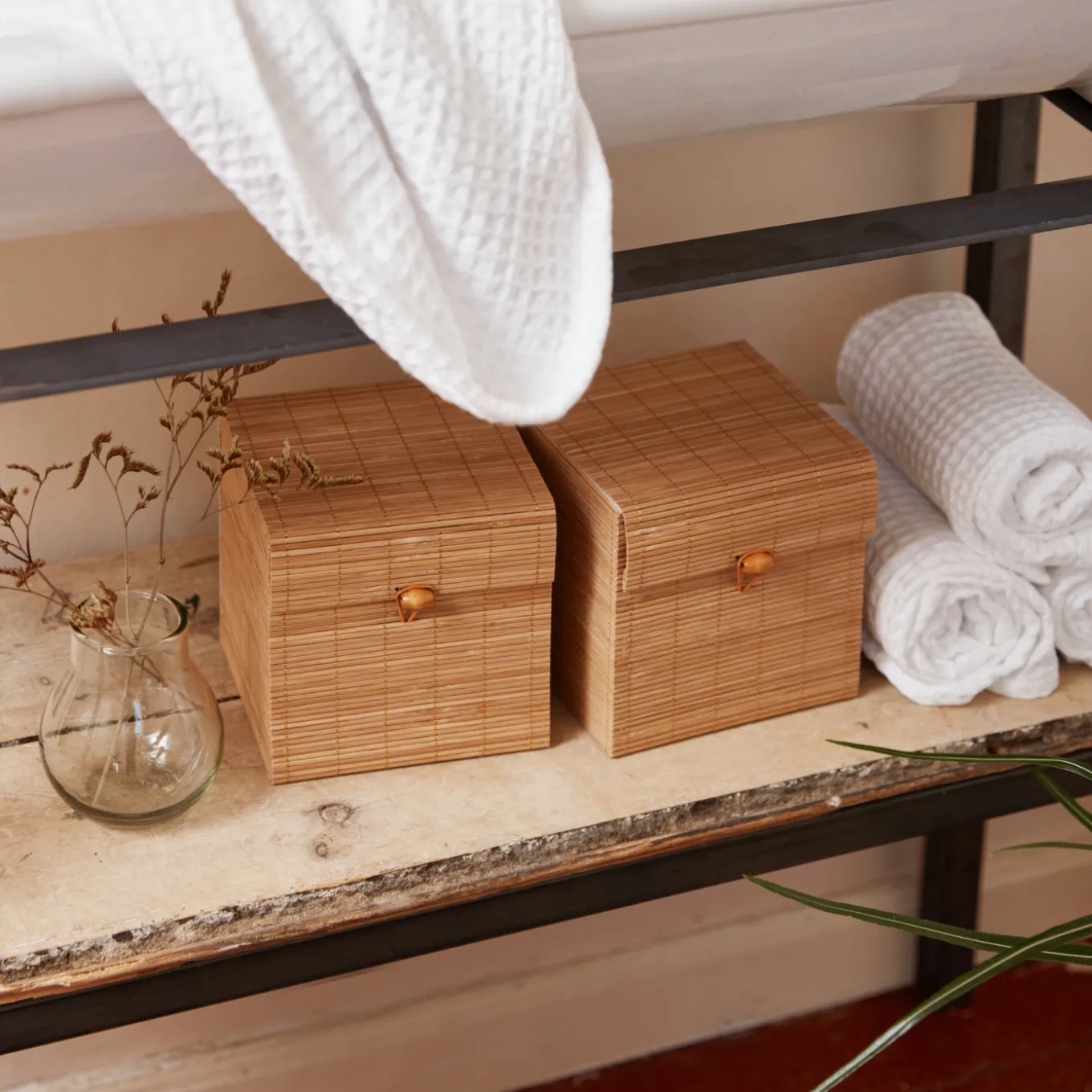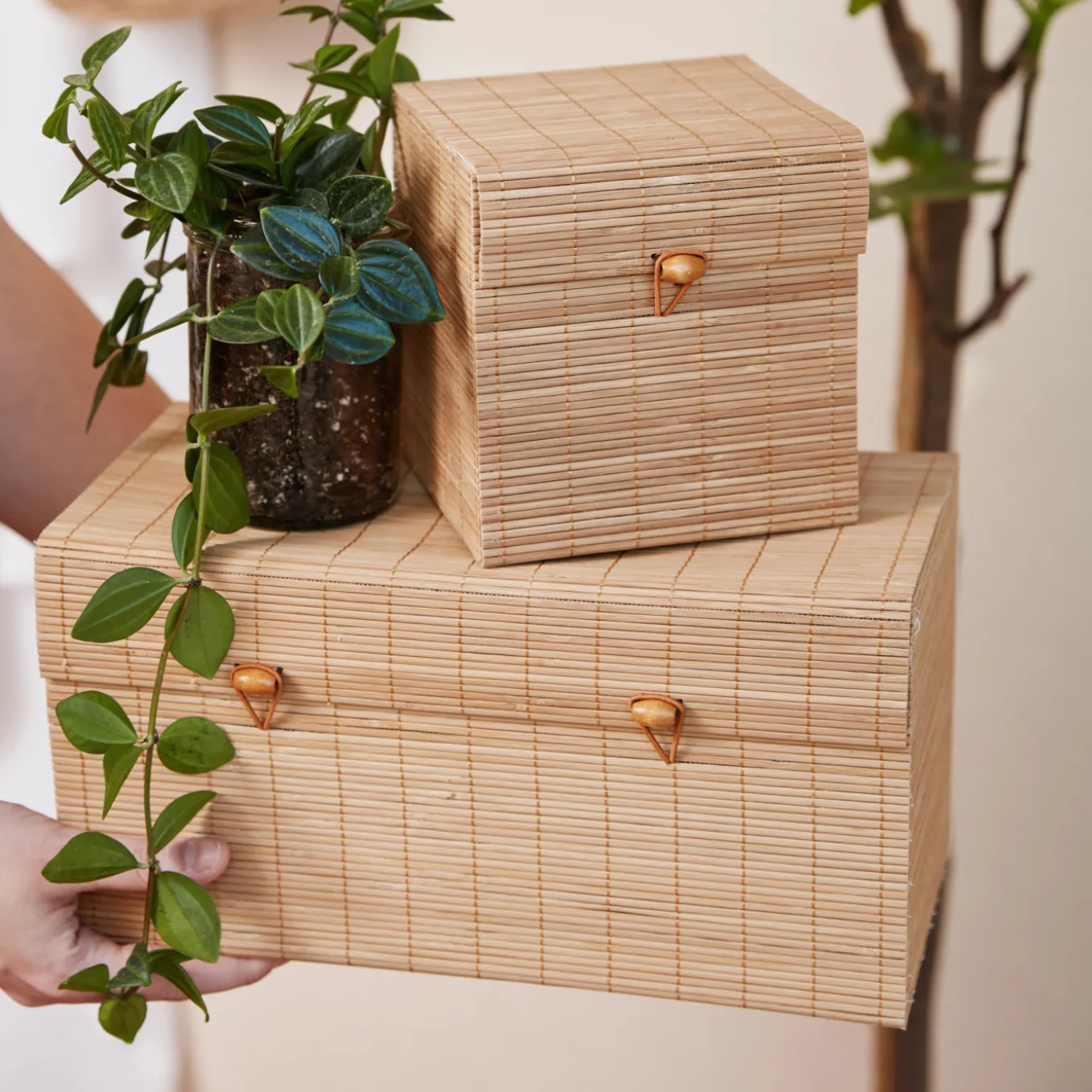 Ordnung halten ist nicht so einfach. Mach es dir so angenehm wie möglich und bewahre deine Dinge in schönen Kisten, Körben, Schachteln und Co. auf. Wir lieben gemütliche Accessoires aus natürlichen Materialien wie Seegras, Jute oder Bambus und deshalb ist diese schöne Schachtel aus Bambus in unserem Onlineshop gelandet.