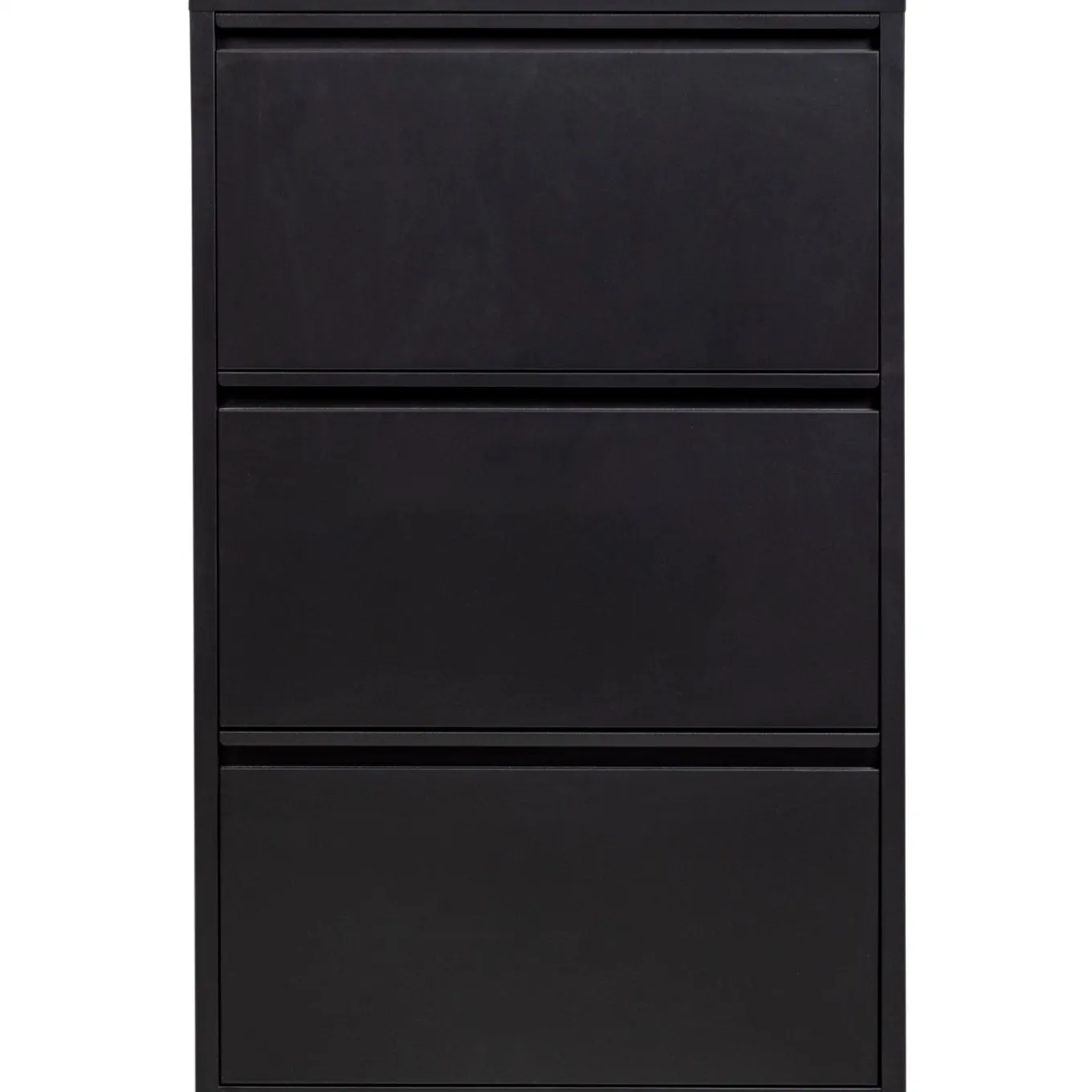 Dieser schmale Schuhschrank kombiniert modernes Design mit hoher Funktionalität. Dank seiner kompakten Maße und den drei geräumigen Klappfächern bietet er viel Platz für deine Schuhe, ohne dabei wertvollen Raum einzunehmen. Das pulverbeschichtete Metall sorgt für eine langlebige und pflegeleichte Oberfläche, die sich in jedes Wohnambiente einfügt.