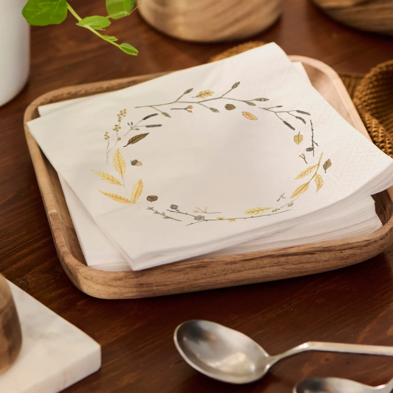 Wir lieben festlich gedeckte Tische. Vor allem lieben wir das Eindecken mit einer harmonischen Material-Kombination aus Holz, Keramik, Glas und natürlichen Stoffen. Diese Papier-Servietten haben einen wunderschönen Herbst Print und sind ein Eyecatcher auf jedem Tisch. Durch das schlichte Design eignen die Servietten sich für so ziemlich jeden Anlass… vom runden Geburtstag bis zur Tauffeier. Na dann, lasst es euch schmecken…
