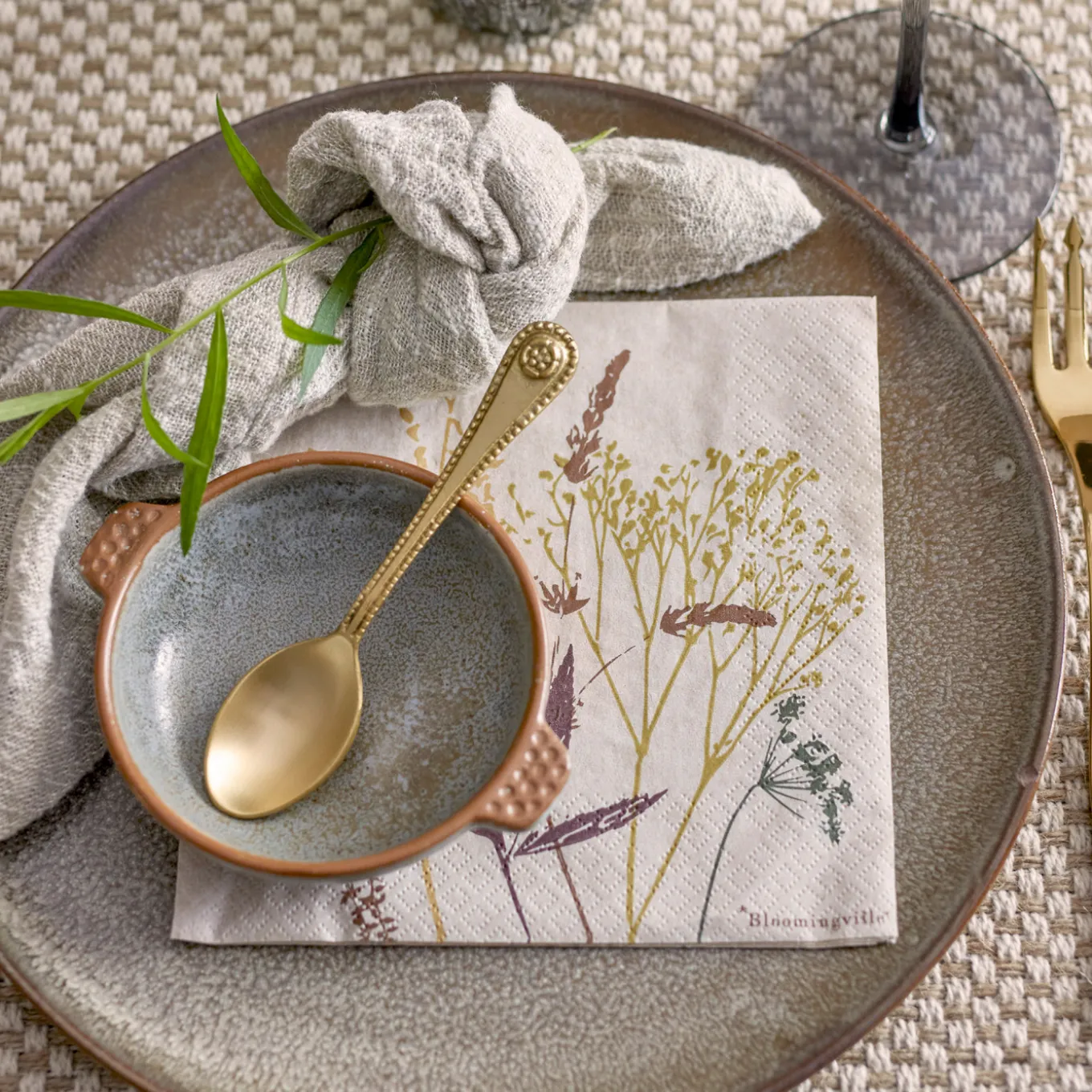 Wir lieben festlich gedeckte Tische. Vor allem lieben wir das Eindecken mit einer harmonischen Material-Kombination aus Holz, Keramik, Glas und natürlichen Stoffen. Diese Papier-Servietten haben einen wunderschönen natürlichen blumigen Print. Wir lieben den floralen Print!
