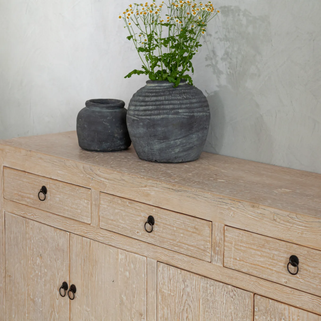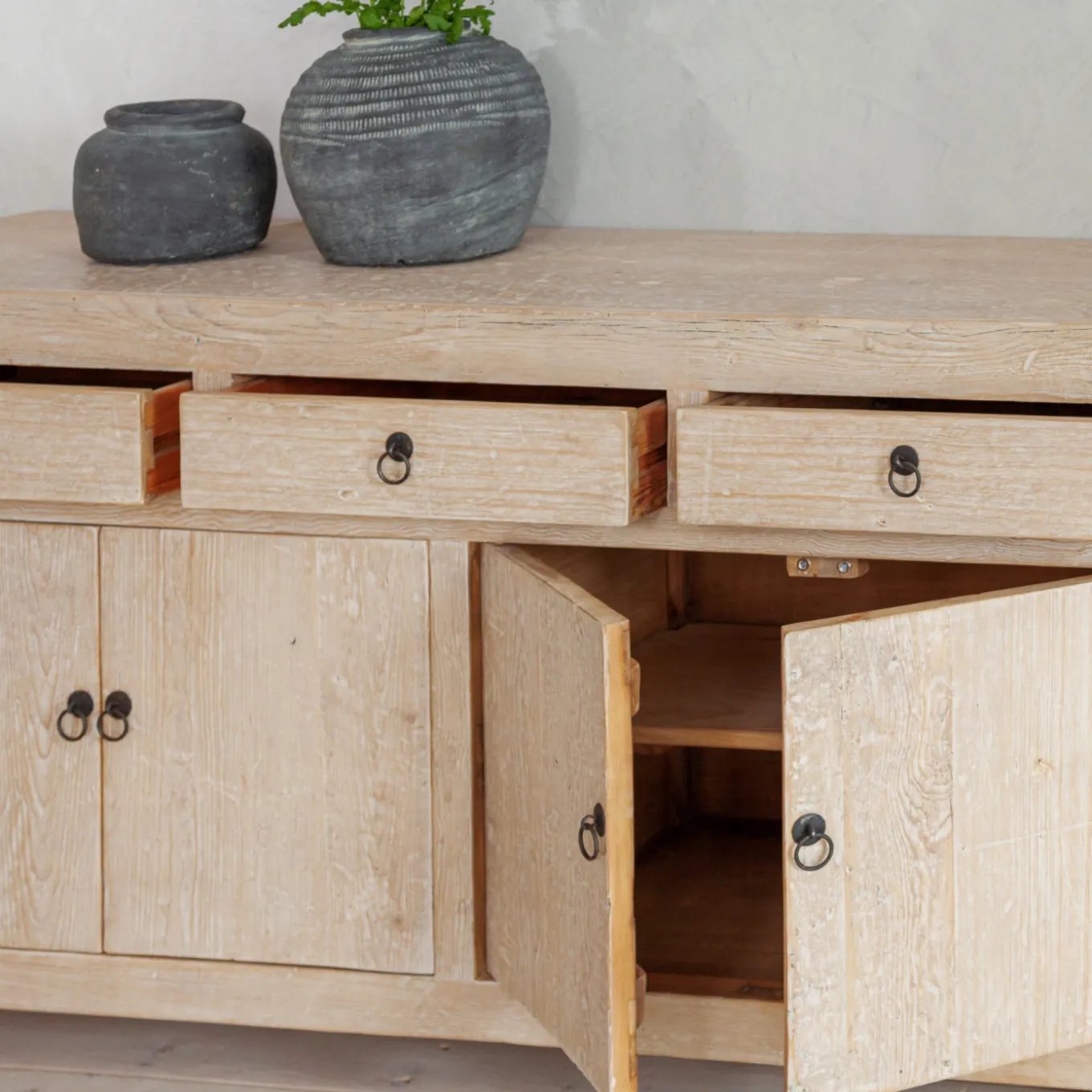 Das Sideboard ist nicht industriell hergestellt – durch die Risse und Äste im Holz wird jedes Sideboard zum Unikat. Deshalb kann sich auch die Farbe und Größe leicht vom Foto unterscheiden.