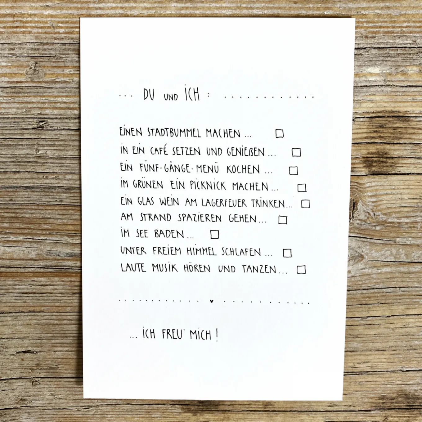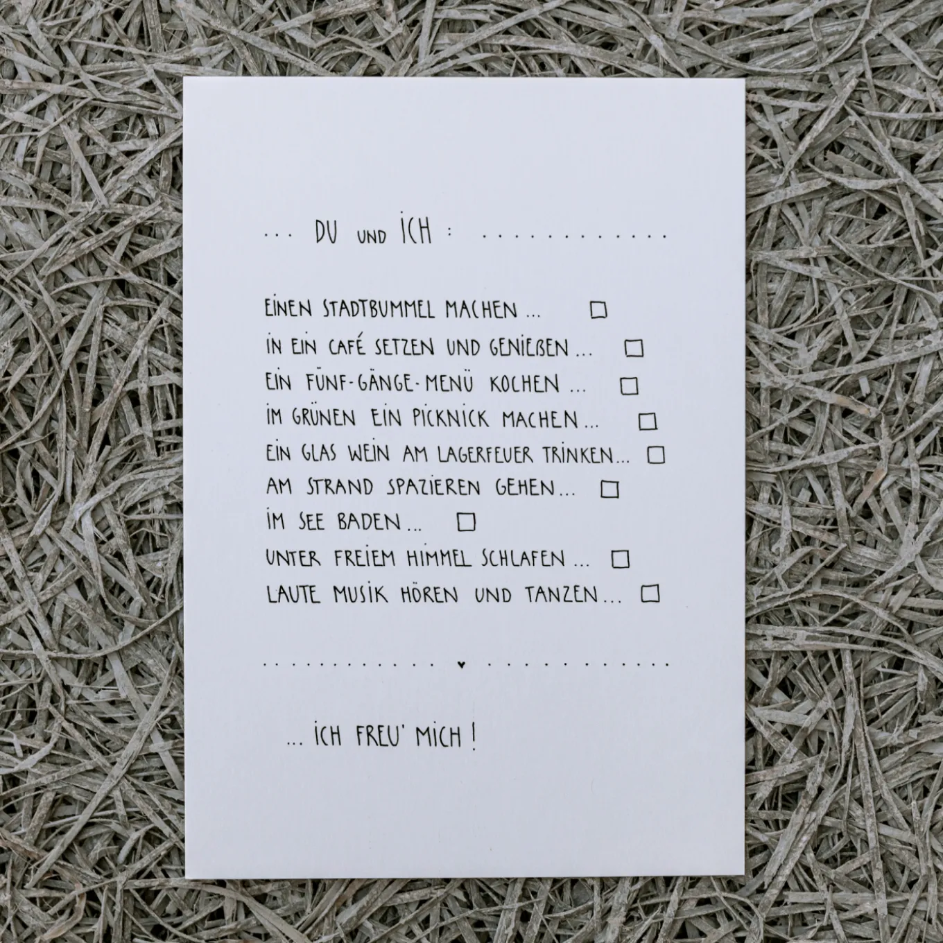 Diese handgeschriebenen Postkarten erzählen kleine Geschichten, beschreiben unsere Sehnsüchte und Wünsche oder erinnern uns einfach an die schönen Dinge im Leben. Gerahmt sind die schlichten Postkarten ein wunderschöner Blickfang in deinem Zuhause. Nutze doch mal einen grauen, regnerischen Sonntag, um dich mal wieder bei deiner besten Freundin zu melden und schreibe eine schöne Postkarte. Die liebevollen Texte eignen sich für vielerlei Anlässe – besonders hübsch wirken die Postkarten, wenn du sie mit einer Kordel an schön verpackten Geschenken befestigst.