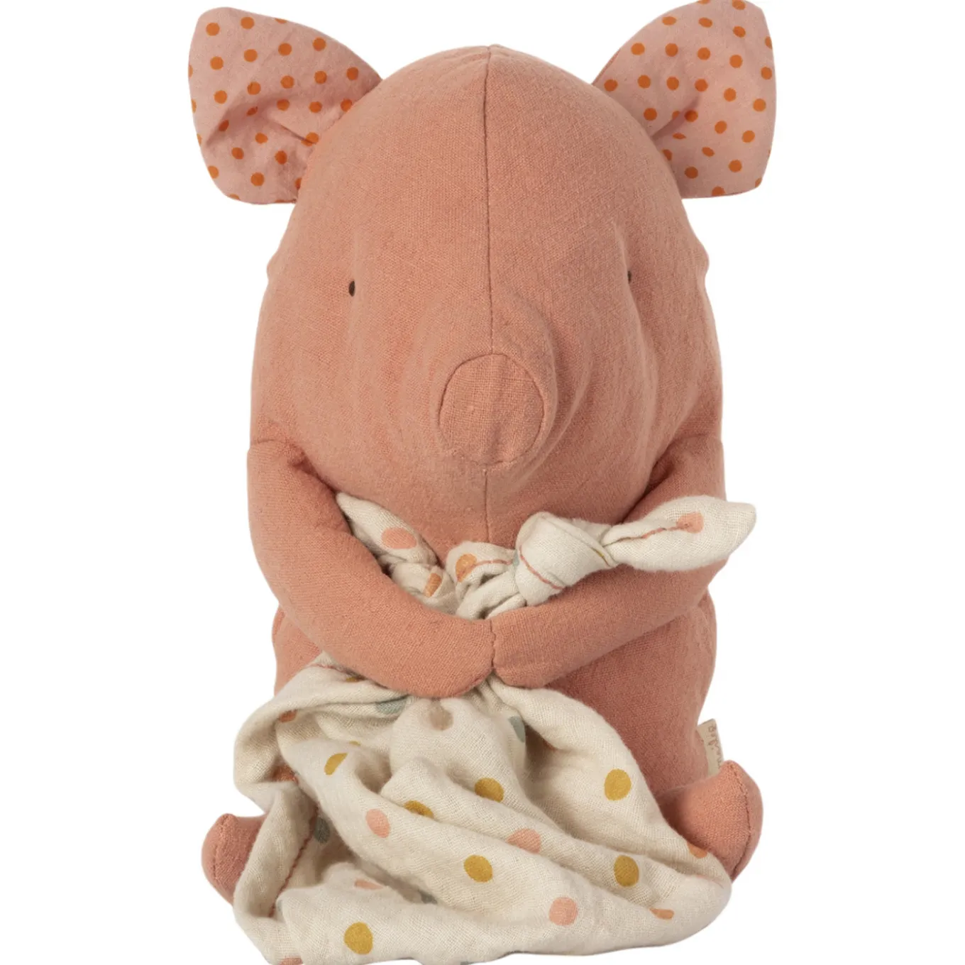 Für die ganz Kleinen unter uns gibt es dieses süße rosa Schweinchen auch mit einem weichen Kuscheltuch. Das Schweinchen spielt sogar ein Schlaflied, wenn du am Schwanz ziehst. Dieses Stofftier Schwein ist aus weichem Leinenstoff hergestellt, also ein perfekter Kuschelpartner in deinem Kinderbett. Übrigens: Liebe Eltern, die Stofftiere von Maileg sind sehr hochwertig. Maileg verspricht Spielzeug, das von Generation zu Generation weitergegeben werden kann. Über das Schweinchen können sich also noch eure Enkelkinder freuen. Ist das nicht toll?