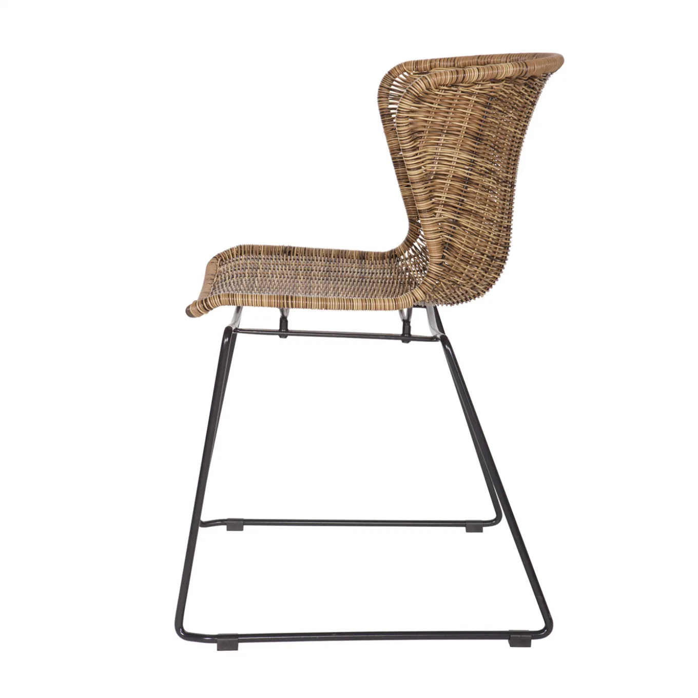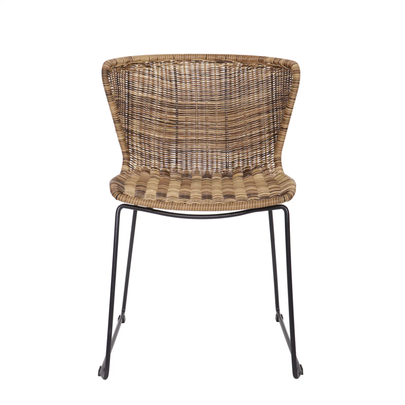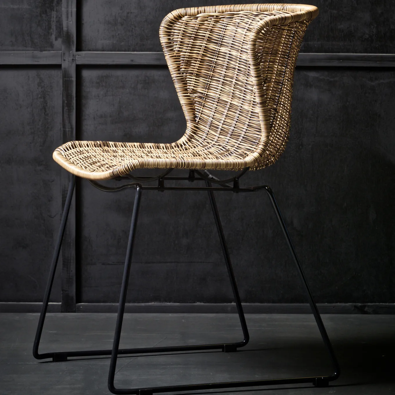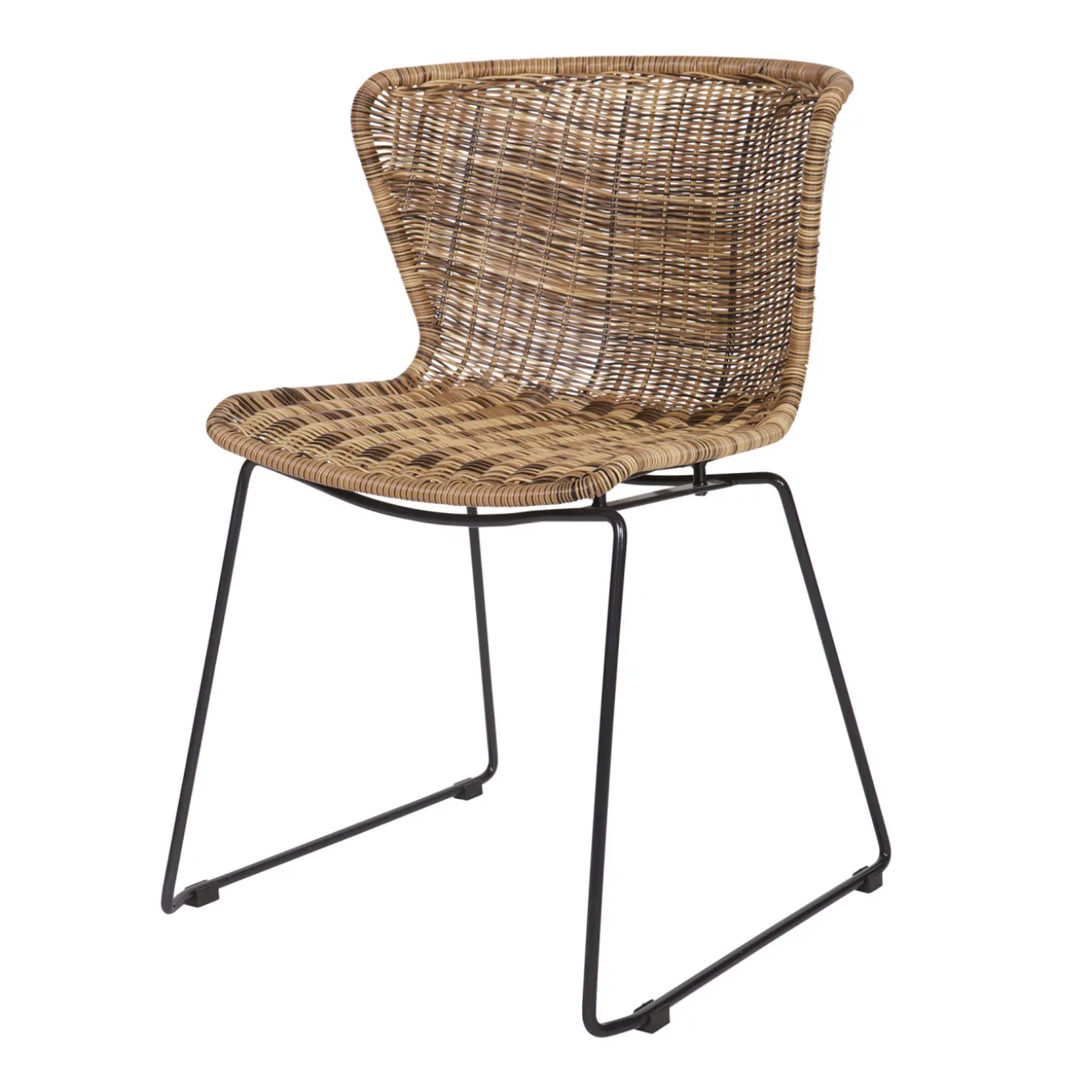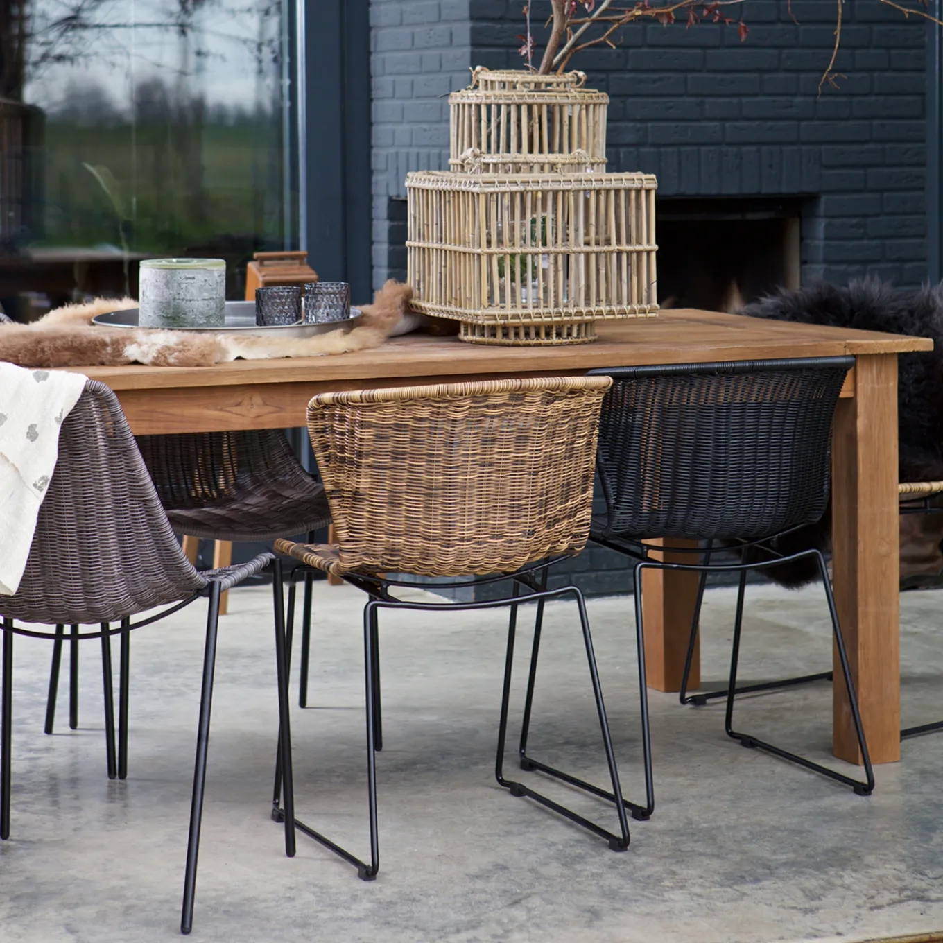 Dieser robuste Stuhl ist voll im Trend: Rattan und schwarzer Stahl. Die Sitzfläche ist aus geflochtenem Polyester-Rattan hergestellt. Deshalb eignet sich der Stuhl auch perfekt für deine Terrasse, Balkon oder Garten. Der Stahlrahmen ist mit einer schwarzen Pulverbeschichtung versehen. Das verleiht dem Stuhl seinen modernen Look!