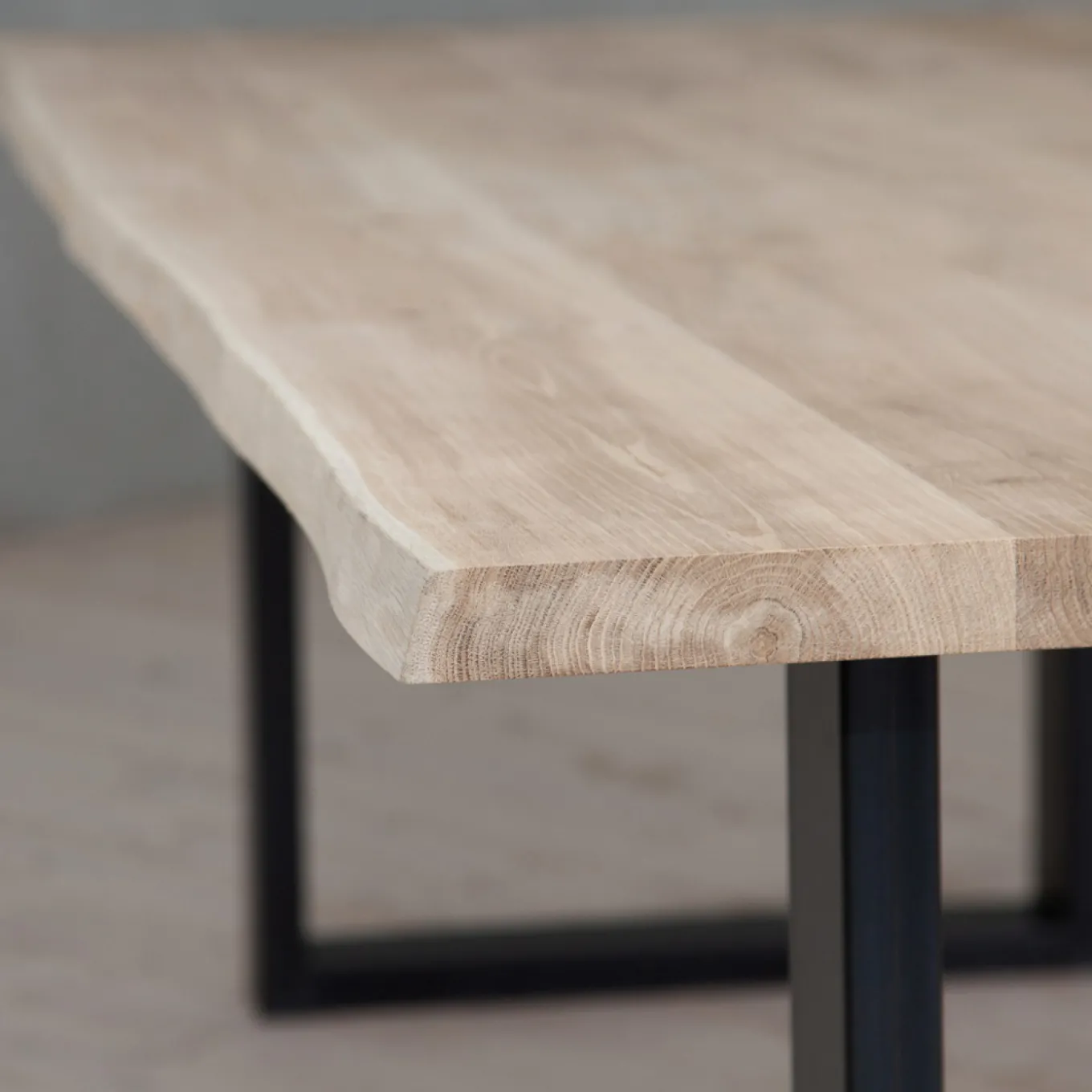 Wie soll die Oberfläche der Tischplatte behandelt werden? Du hast die Wahl. Du magst es weniger robust? Auf Wunsch können Äste und Risse gespachtelt werden. Zudem kannst du zwischen zwei Oberflächenbehandlungen wählen: Roh oder Natur. Die Roh-Optik ist hell und sieht aus wie Eiche im unbehandelten, frisch gehobelten Zustand. Die Natur-Optik ist etwas dunkler, dadurch wird die Holzmaserung und Äste besonders betont.