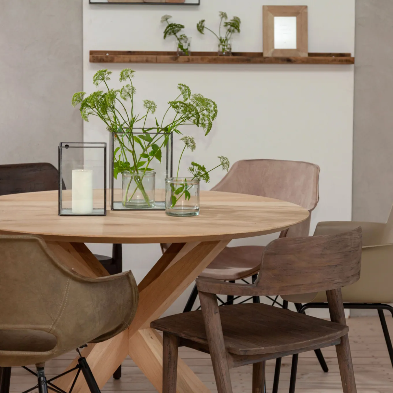Entdecke diesen formschönen runden Tisch von Wohnlust – eine wahre Meisterleistung in Sachen Design und Handwerkskunst. Dieser Tisch vereint natürliche Schönheit und elegante Leichtigkeit in einem einzigartigen Möbelstück, das in jedem Raum ein Highlight setzt.