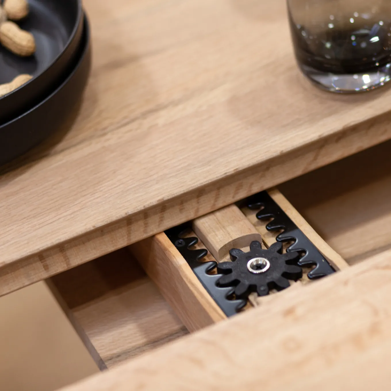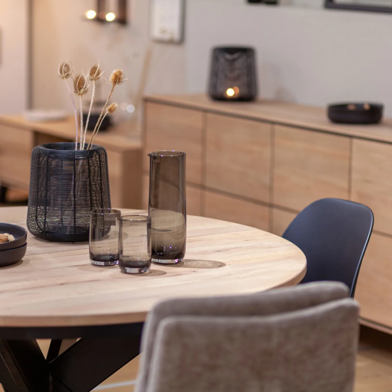 Der Tisch hat ein Durchmesser zwischen 120 und 140 cm, kann jedoch um bis zu zwei Ansteckplatten von je 40 cm erweitert werden. Das macht ihn unserer Meinung nach ideal für jedes Esszimmer.