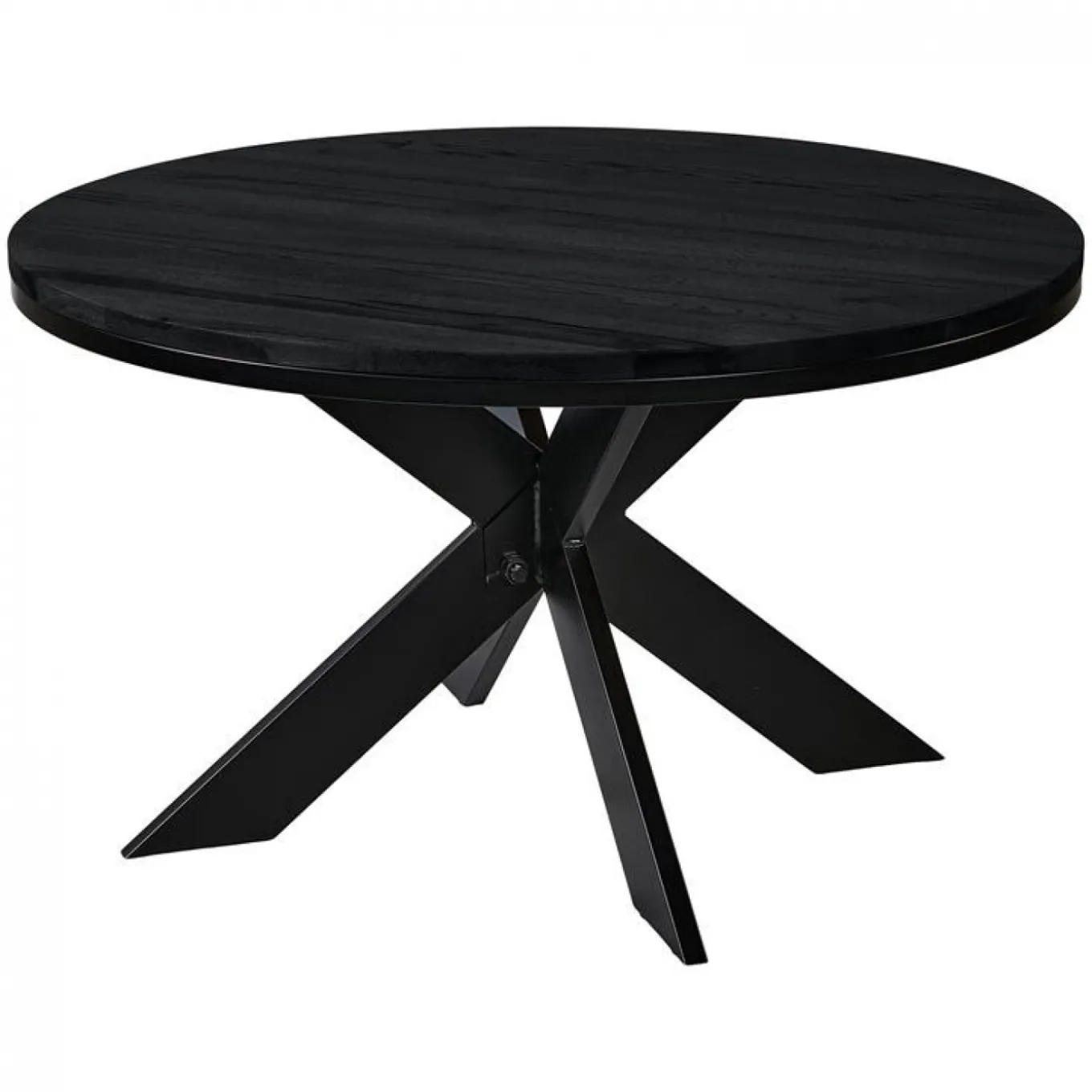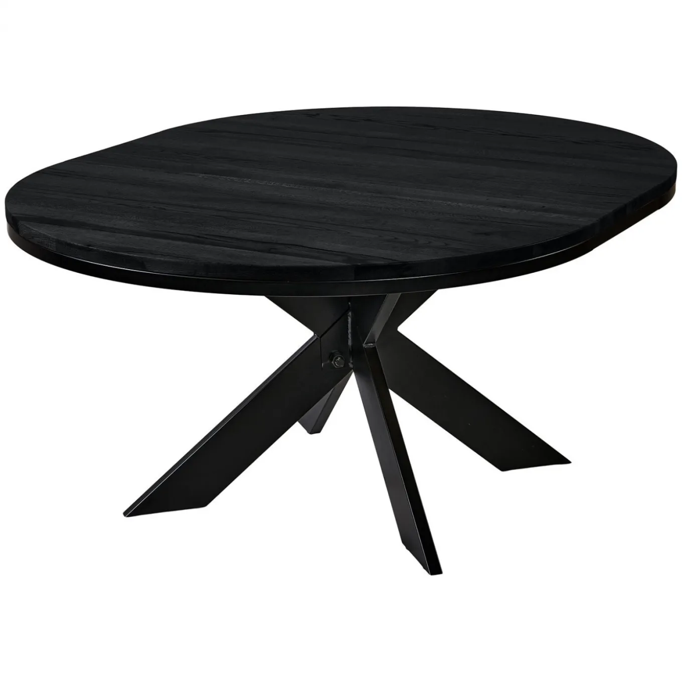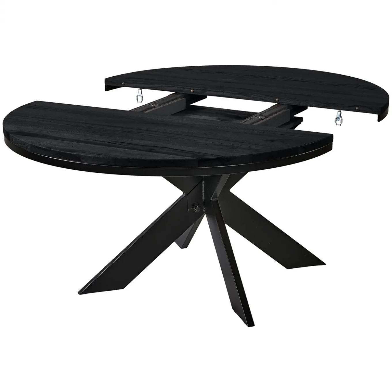 Dieser runde Esstisch aus massiver, rustikaler Eiche mit einem Gestell aus schwarzem Metall ist zeitlos und ein absolutes Verwandlungsgenie!