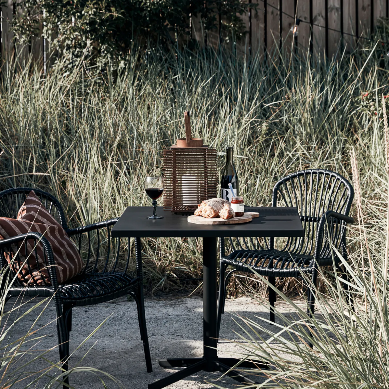 Schaffe mit diesem quadratischen Tisch eine lässige urbane Sitzecke. Der Tisch von House Doctor aus Eisen ist sowohl für drinnen als auch draußen geeignet. Der Eisentisch ist mit einer mattschwarzen Pulverbeschichtung überzogen. Das erzeugt ein zeitloses Design, das wirklich zu jeder Einrichtung passt. Der Tisch ist perfekt für kleine Wohnungen, denn du kannst ihn einfach Zusammenklappen. Um besonders lange Freude am Tisch zu haben, empfehlen wir, ihn bei Regen und Kälte nicht draußen zu lassen.