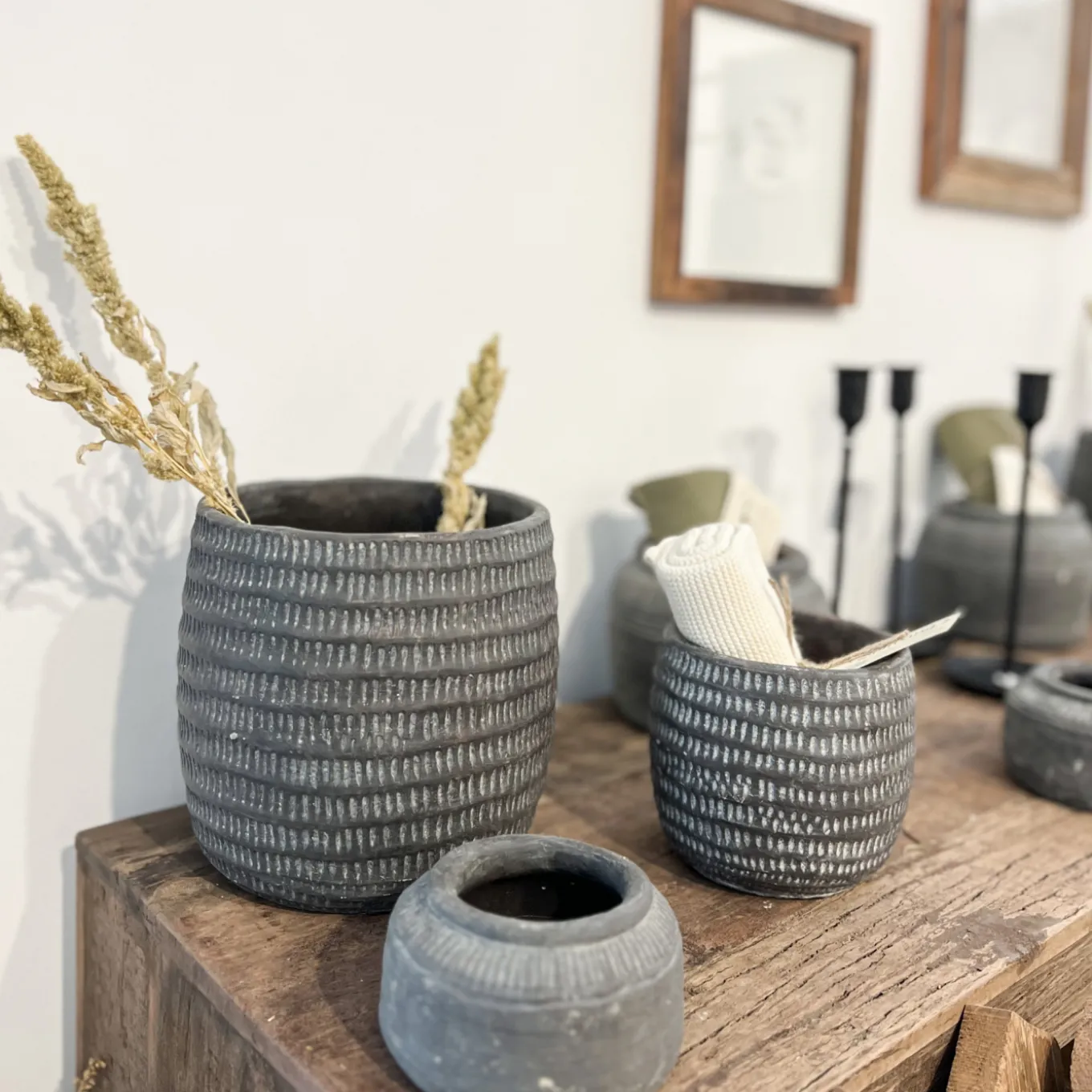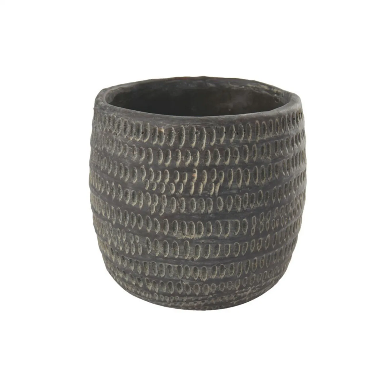 Einzigartig. Schlicht. Natürlich. Wir lieben den handgefertigten Pflanztopf. Der Übertopf ist perfekt für deine Kräuter und Pflanzen. Der mit Ornamenten verzierte Pflanztopf ist aus Zement gefertigt. Du kannst den Topf im Innen- und Außenbereich verwenden.