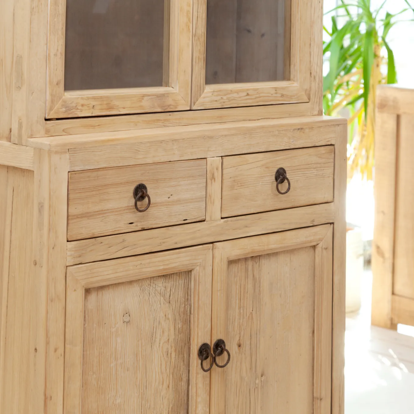 Diese Vitrine wird nicht industriell hergestellt – die natürlichen Risse und Äste im Holz machen jede Vitrine zu einem Unikat. Daher können sich auch die Farbe und Größe leicht vom Foto unterscheiden.