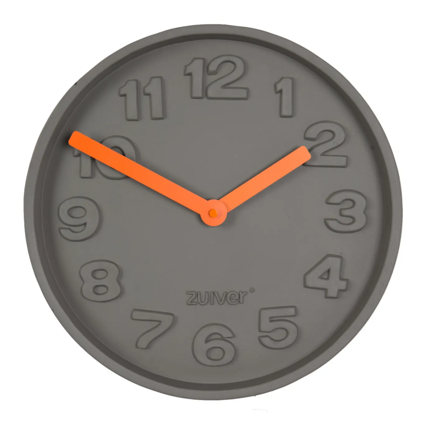 Was für ein außergewöhnliches Design… rustikal und gleichzeitig modern. Diese Wanduhr ist aus Beton gefertigt. Die auffälligen orangenen, modernen Zeiger sind aus Aluminium geschnitten.