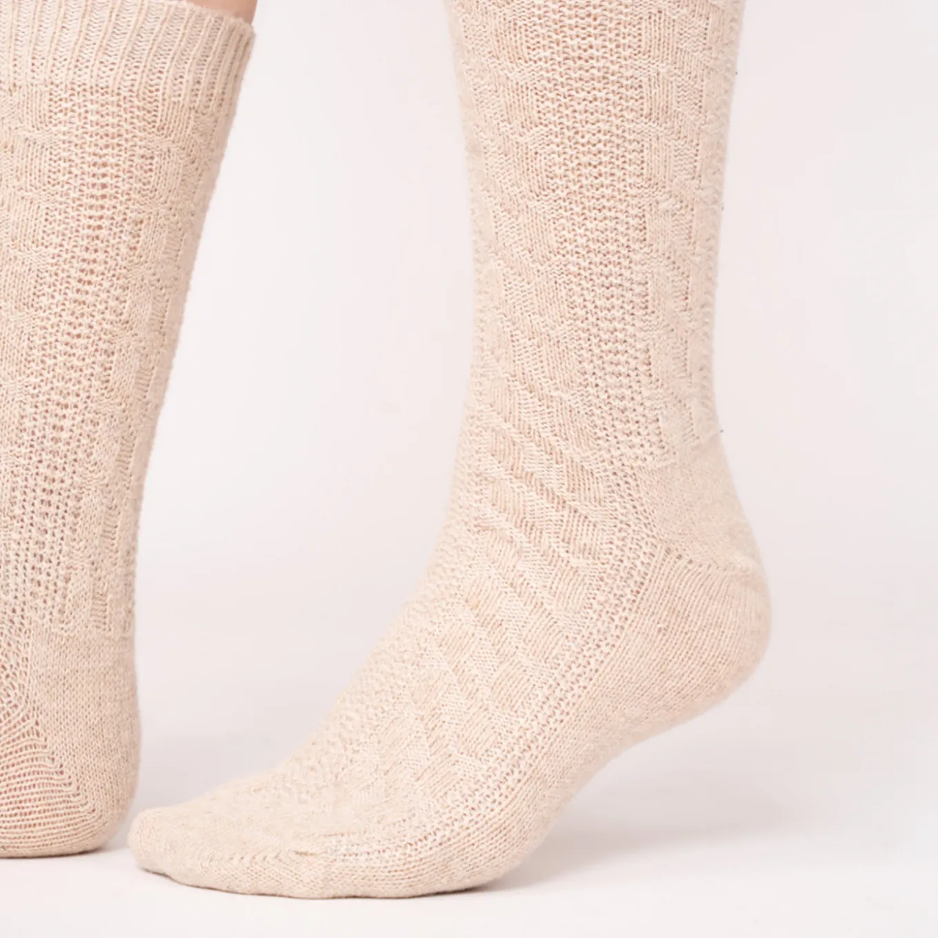 Unsere Lammwolle Socken sind der Inbegriff von Komfort und Qualität. Mit einem hohen Wollanteil von 70% aus weicher Lammwolle und einem zeitlosen Zopfmuster überzeugen sie durch Strapazierfähigkeit und elegantes Design. Perfekt als Wintersocken, um während der kalten Jahreszeit warme und trockene Füße zu genießen.