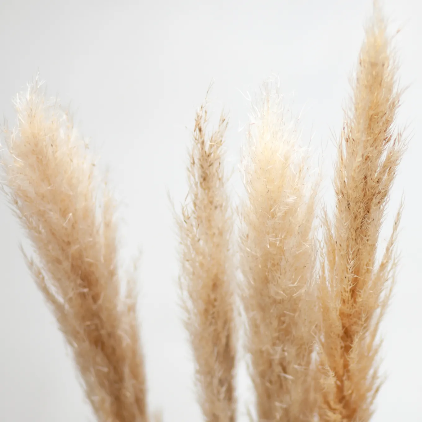 Das wunderschöne Pampasgras wird auch Cortaderia selloana genannt. Wir lieben die wunderschönen Federn der Trockenpflanze und finden es besonders schön, wenn du die Gräser in eine große Glasvase stellst. So sieht man auch die schönen Stiele!